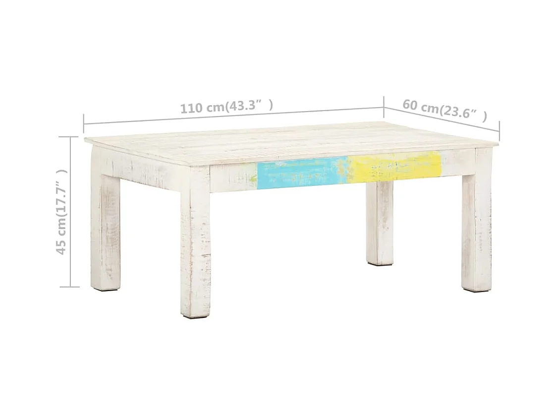 Mesa de centro de madera de mango maciza blanca 110x60x45 cm ES80454