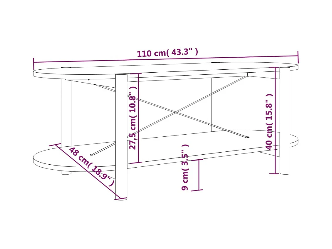 Mesa de centro madera contrachapada negro 110x48x40 cm ES73289