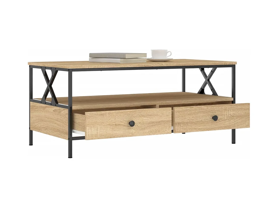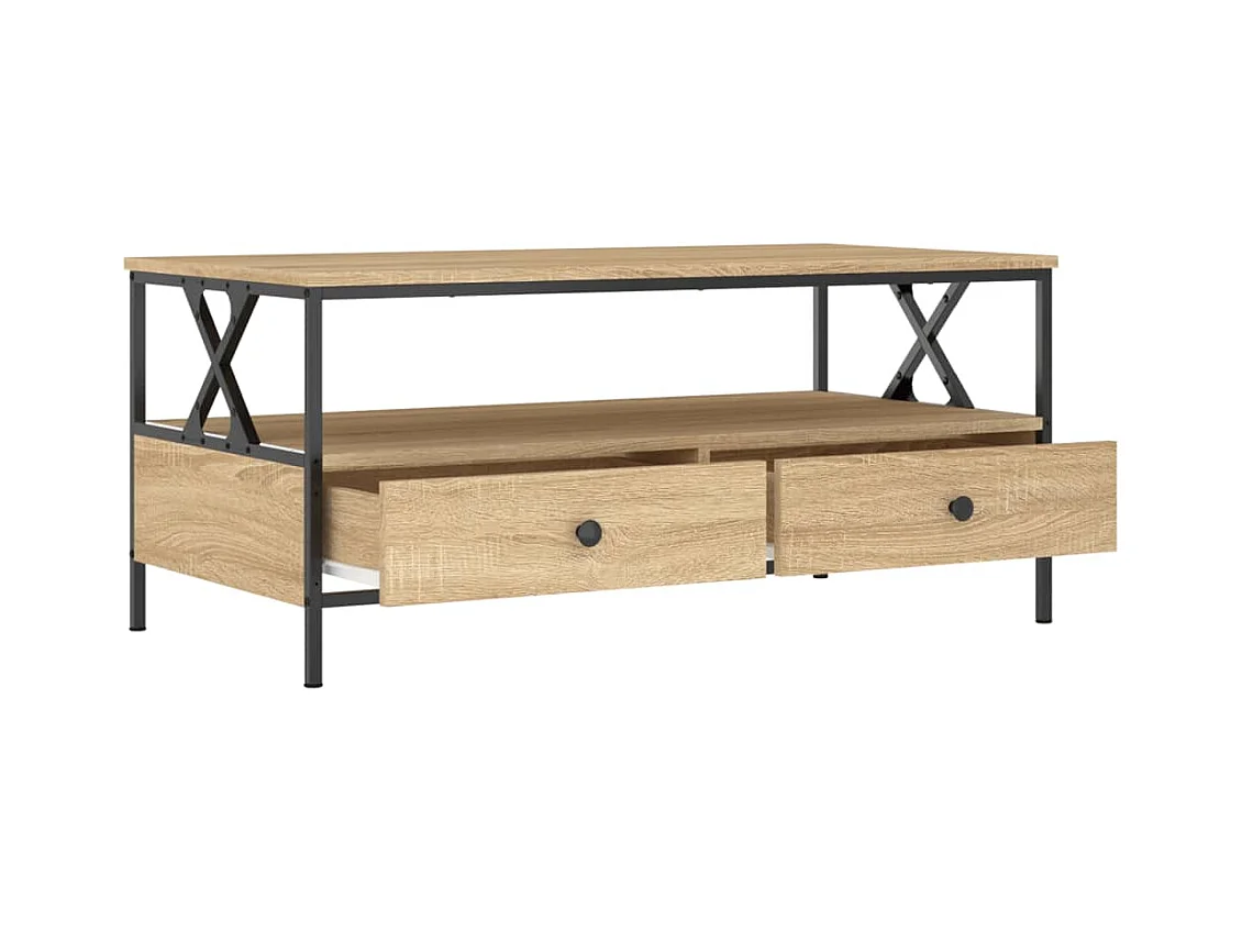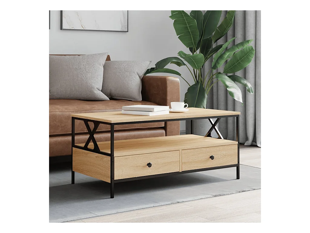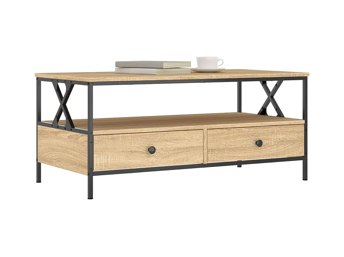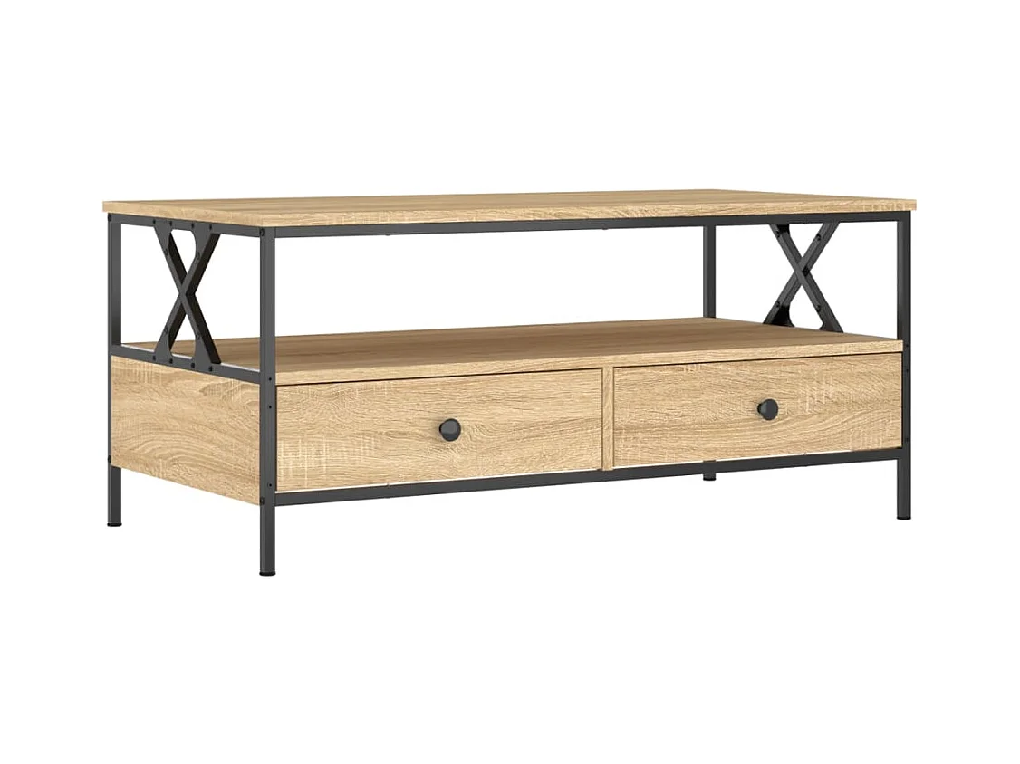 Mesa de centro | Mesa auxiliar madera ingeniería y hierro roble humo 80x80x45cm SHL2704