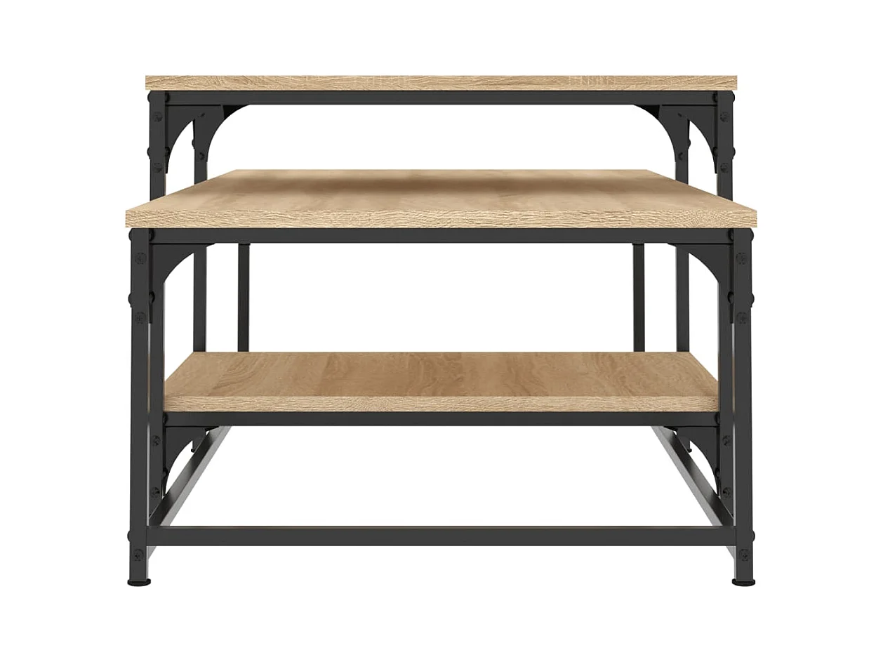 Mesa de centro | Mesa auxiliar salon estante madera ingeniería roble ahumado 100x51x40cm SHL3005