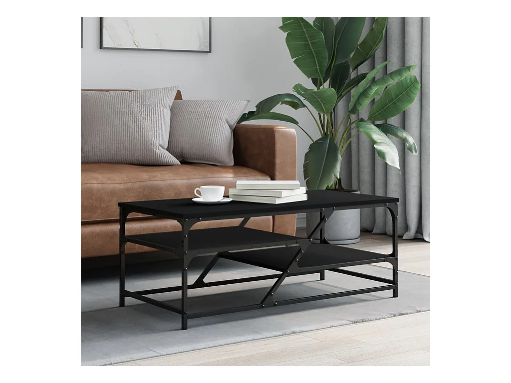 Mesa de centro-Mesa auxiliar madera maciza de mango negra 80x54x40 cm SHL2261