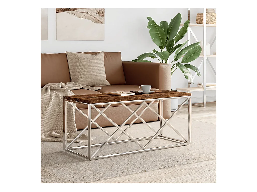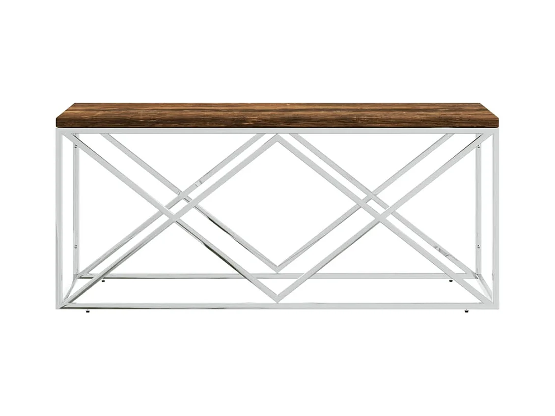 Mesa de centro acero inoxidable y madera maciza acacia plateado