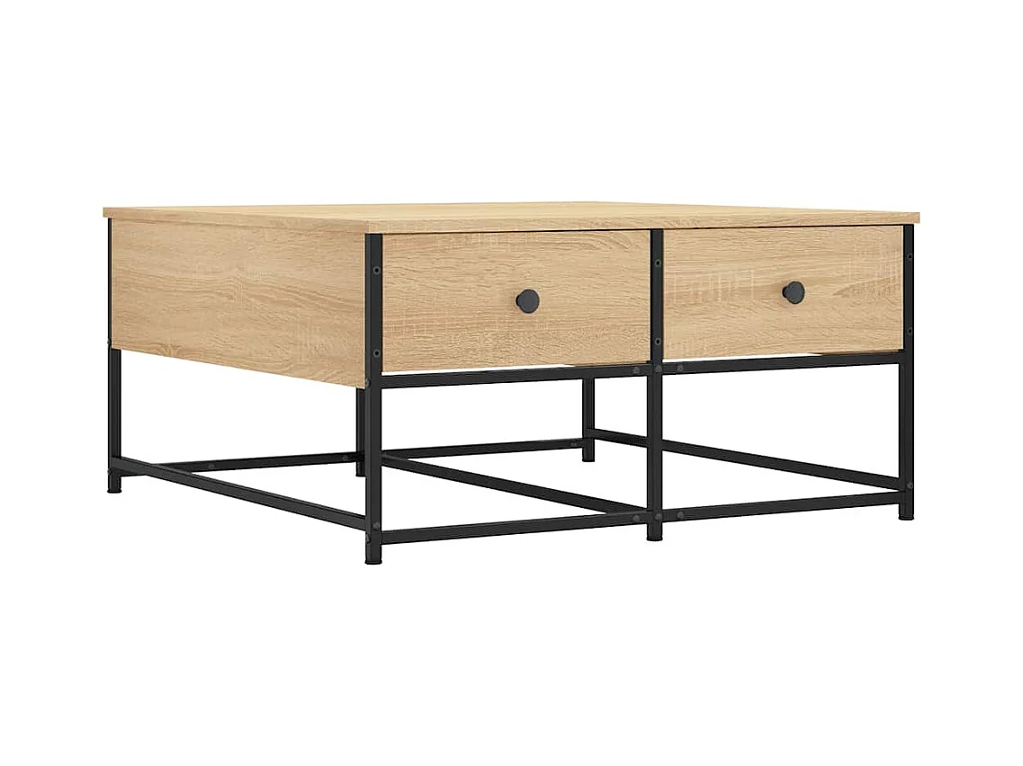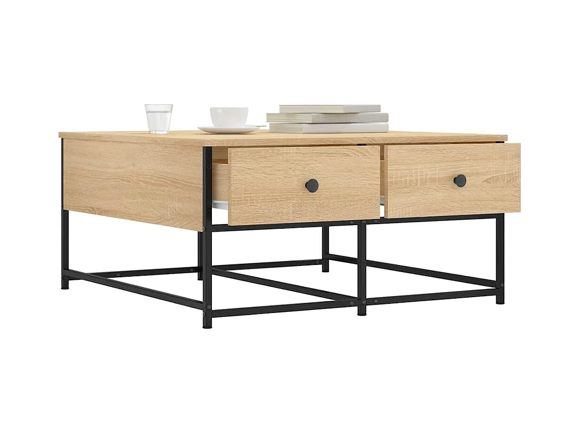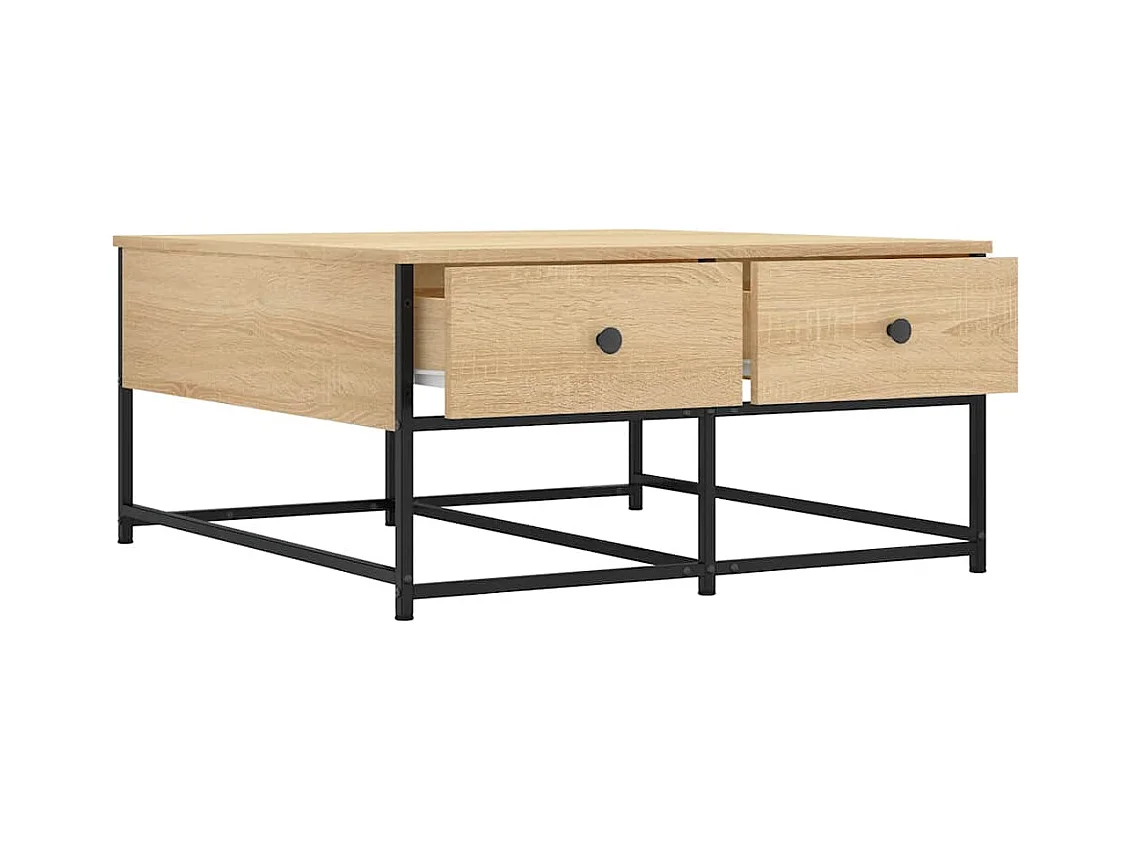 Mesa de centro-Mesa auxiliar con patas de metal 2 uds roble Sonoma 50x50x40cm SHL344