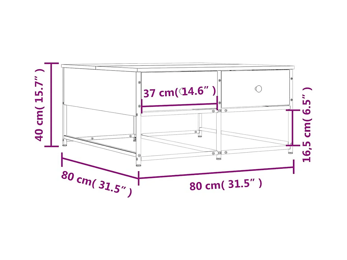 Mesa de centro | Mesa auxiliar madera contrachapada roble ahumado 55x55x36,5 cm SHL1327