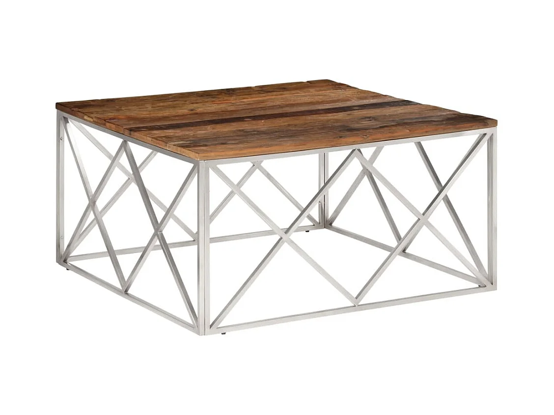 Mesa de centro acero inoxidable y madera reciclada plateado ES86064