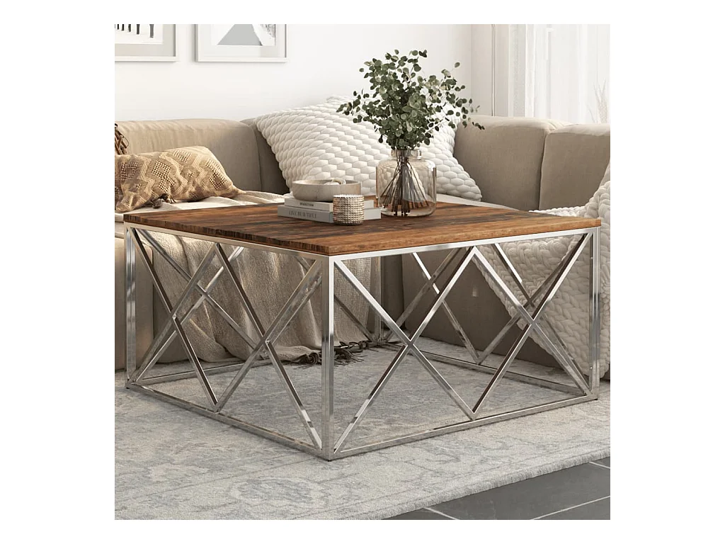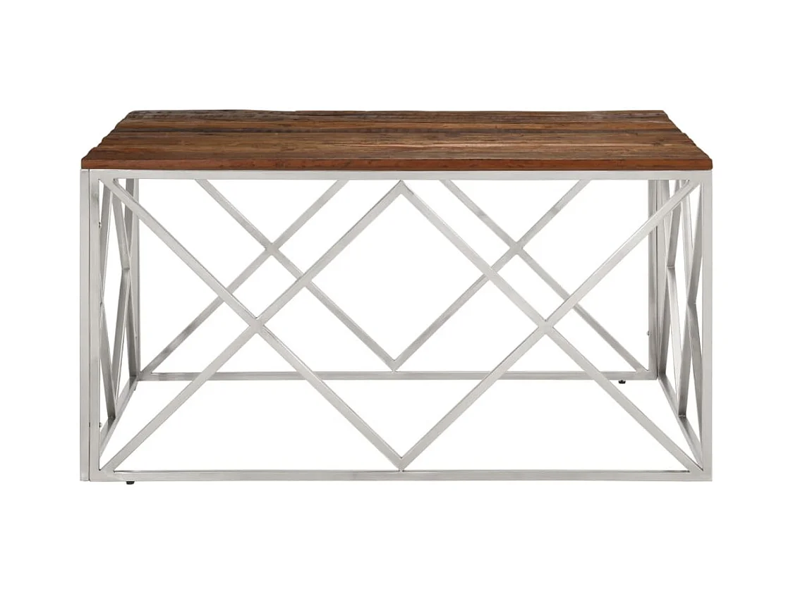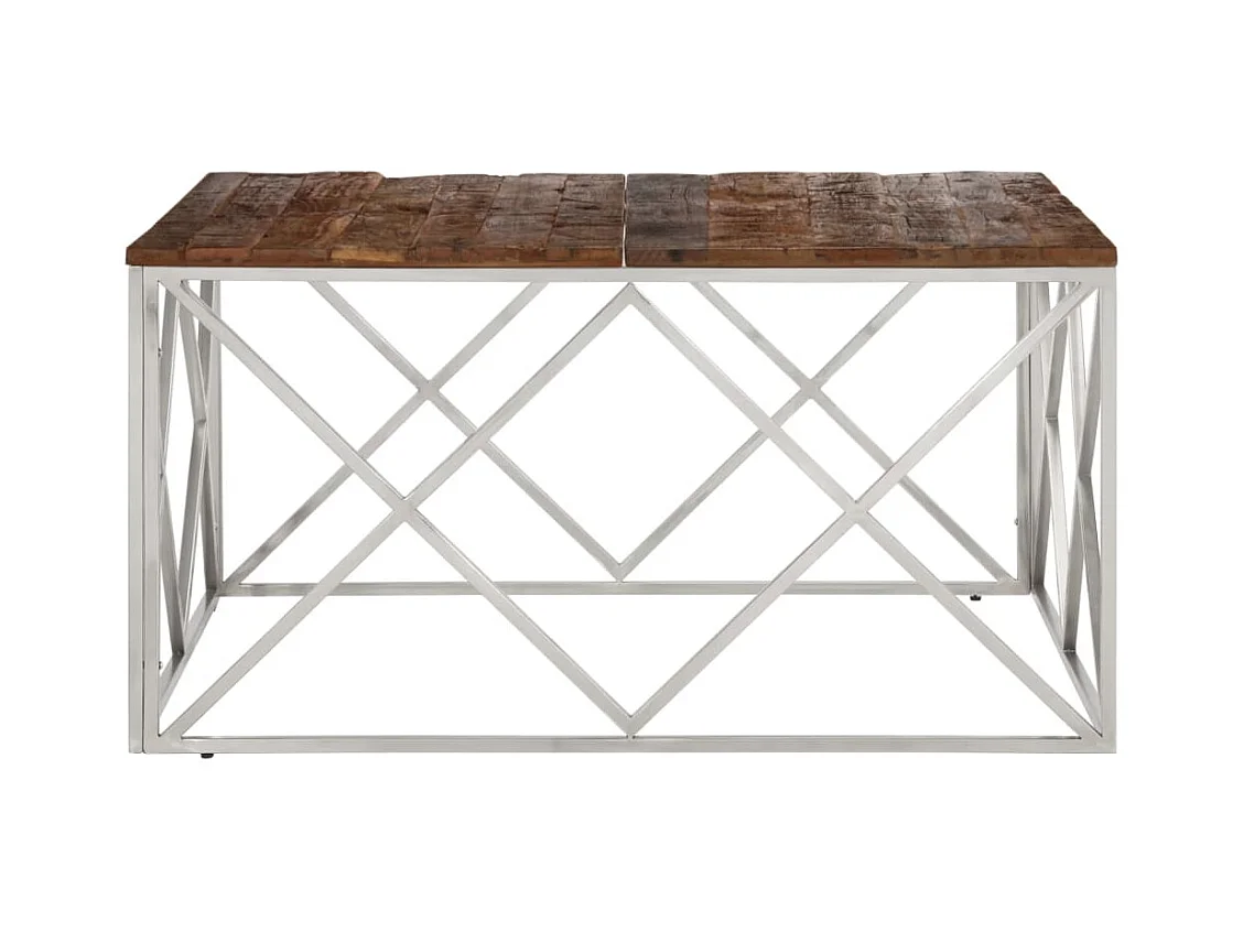 Mesa de centro acero inoxidable y madera reciclada plateada ES20315
