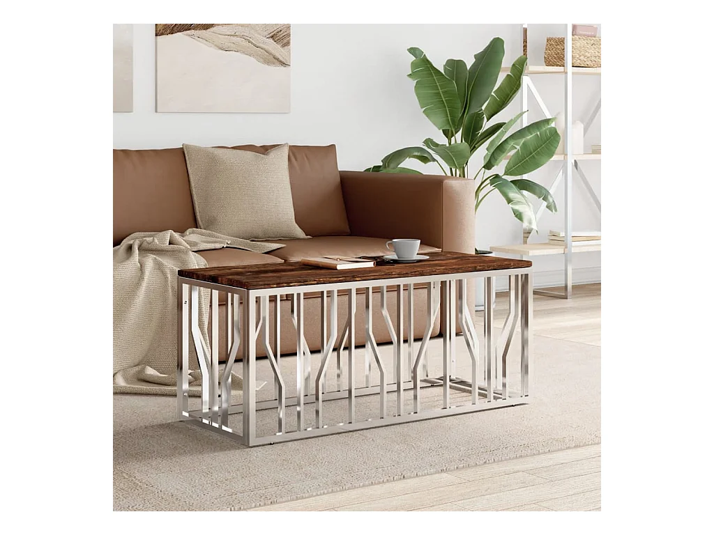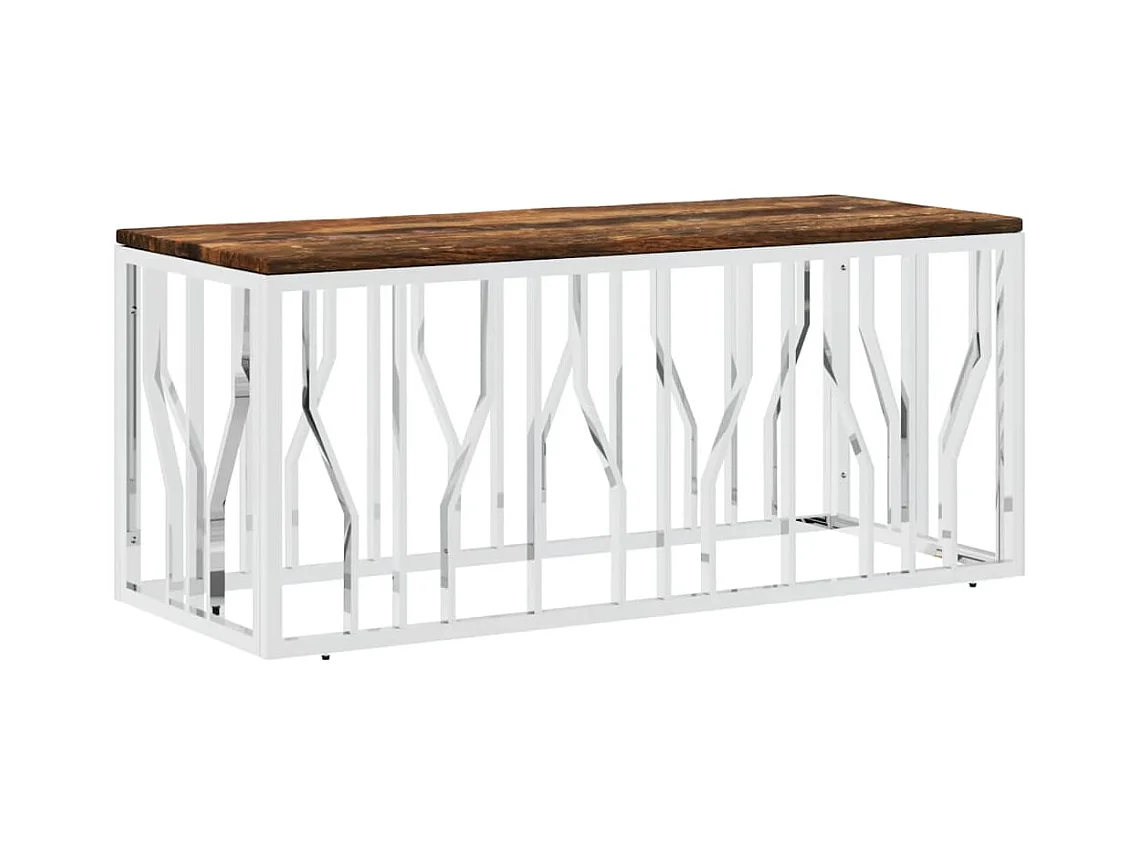 Mesa de centro acero inoxidable y madera maciza acacia plateado