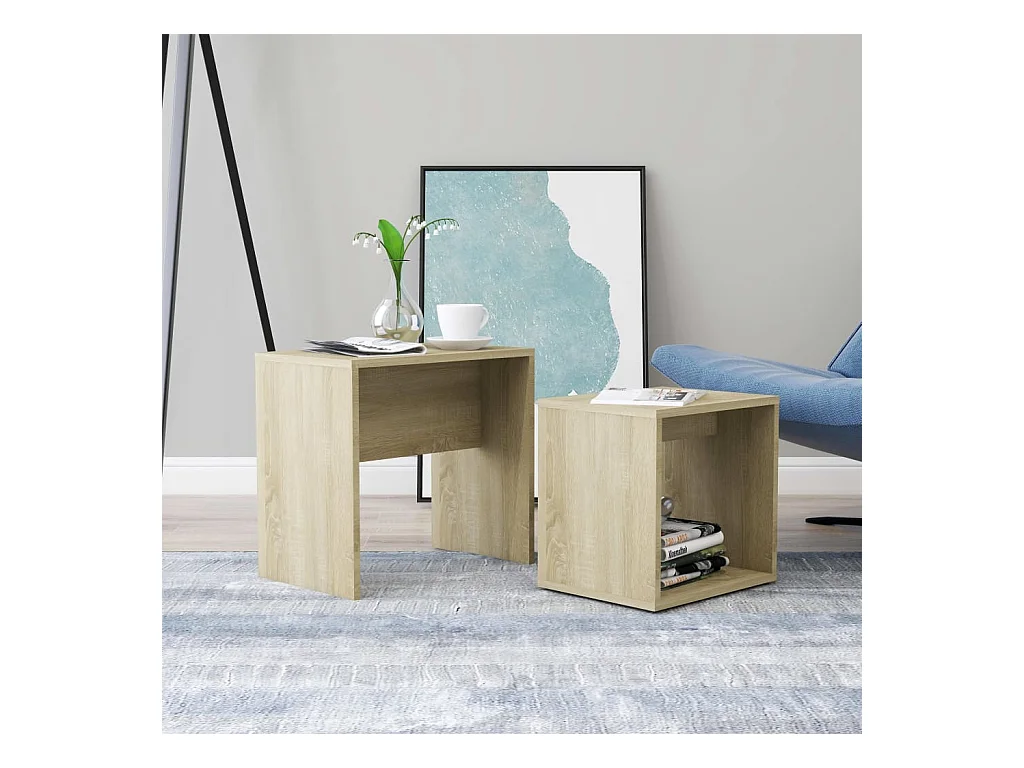 Mesa de centro | Mesa auxiliar madera contrachapada marrón roble 50x50x35 cm SHL50537