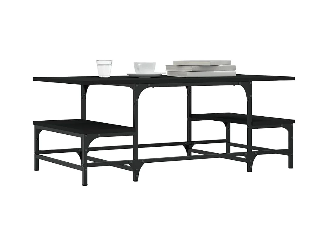 Mesa de centro-Mesa auxiliar madera maciza de mango negra 80x54x40 cm SHL2261