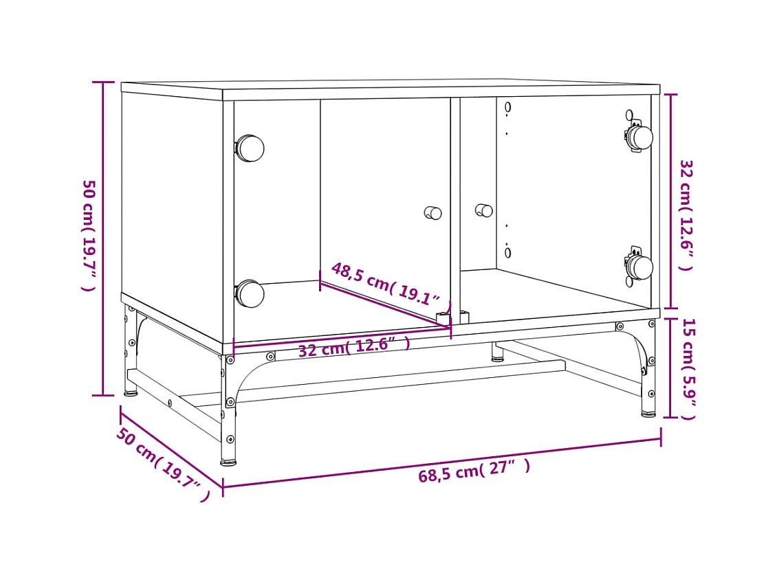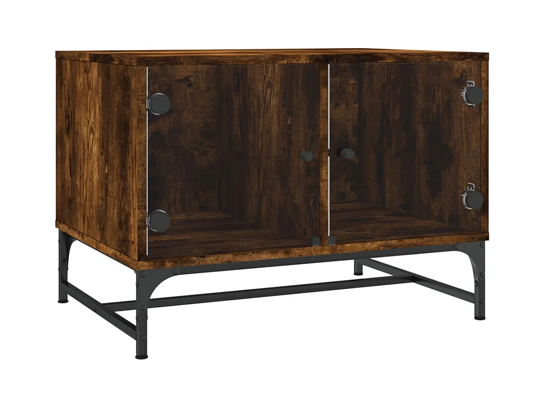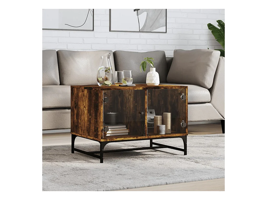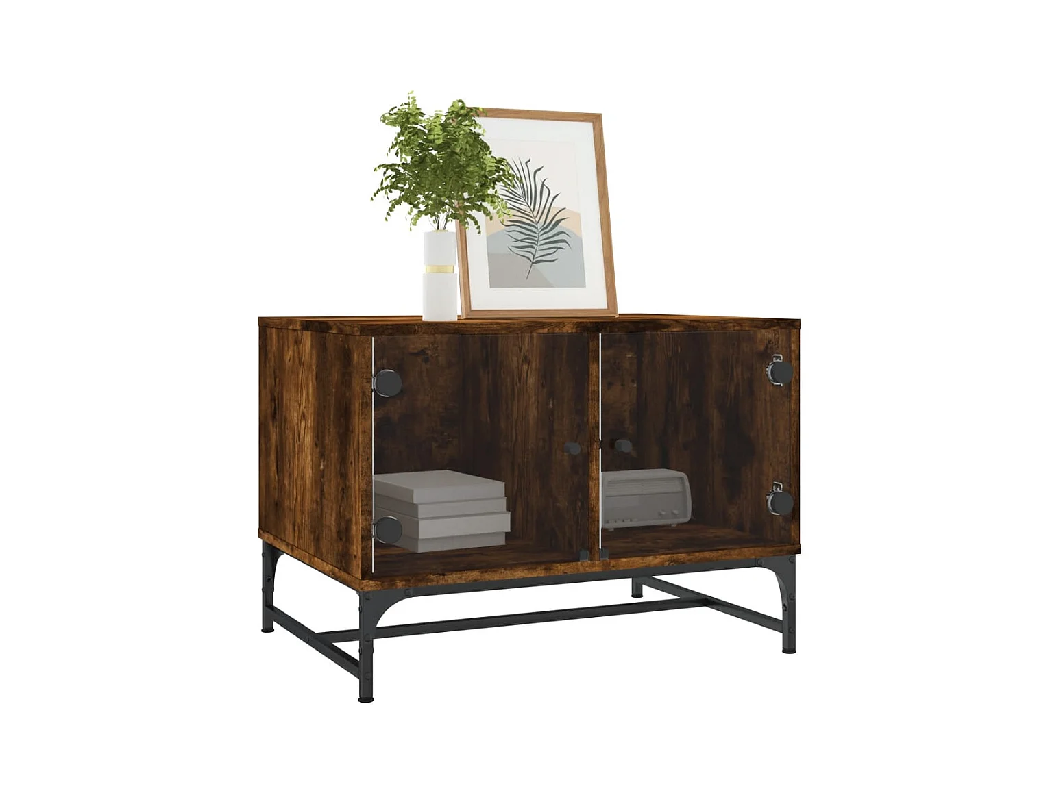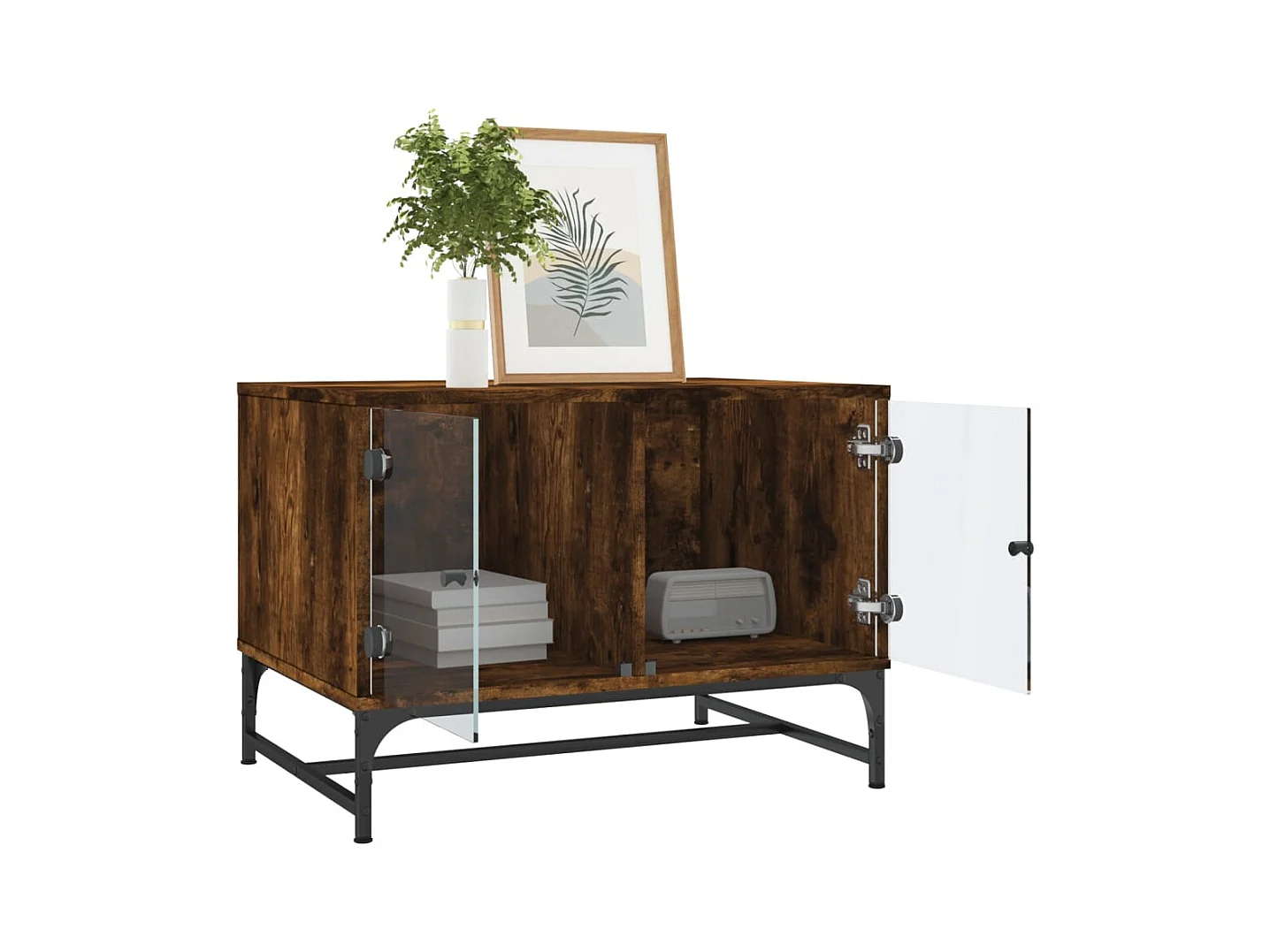 Mesa de centro con puertas de cristal roble ahumado 68,5x50x50 cm