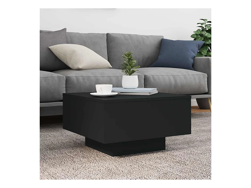 Mesa de centro | Mesa auxiliar y LED madera ingeniería roble ahumado 70x50x30cm SHL4832