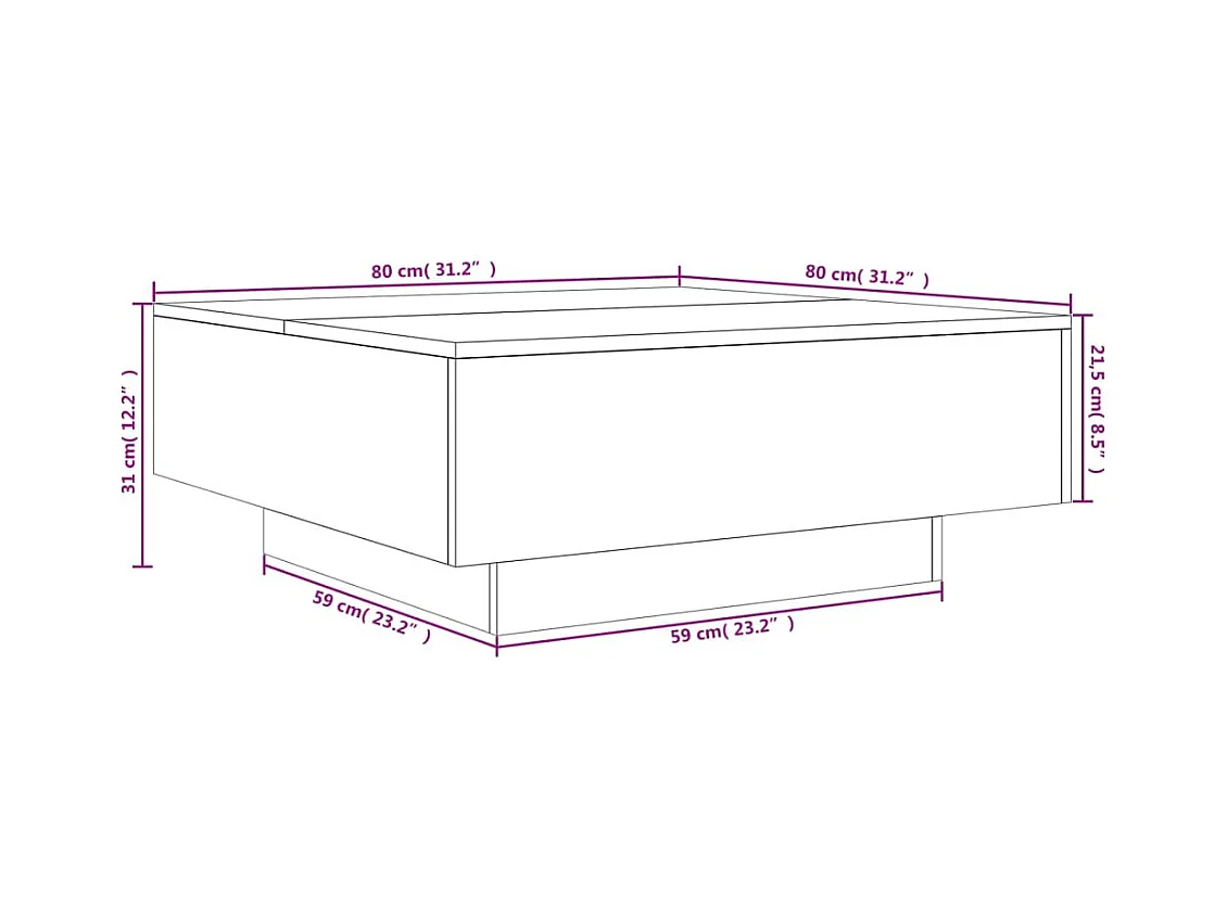 Mesa de centro | Mesa auxiliar y LED madera ingeniería marrón roble 73x53x45 cm SHL2298
