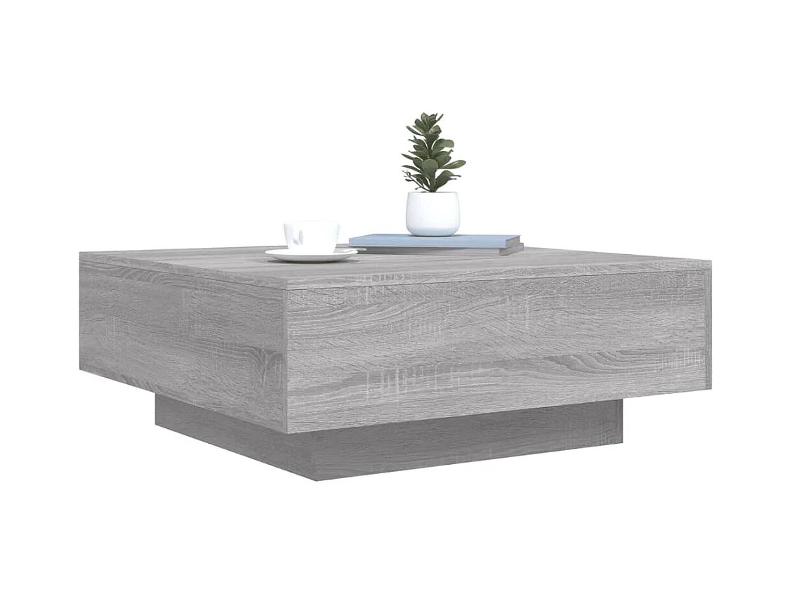 Mesa de centro | Mesa auxiliar y LED madera ingeniería marrón roble 73x53x45 cm SHL2298