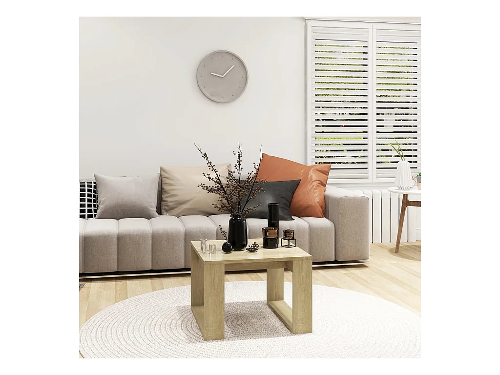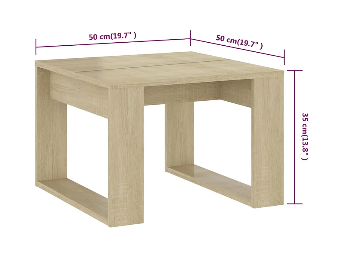 Mesa de centro de madera contrachapada color roble 50x50x35 cm ES78512
