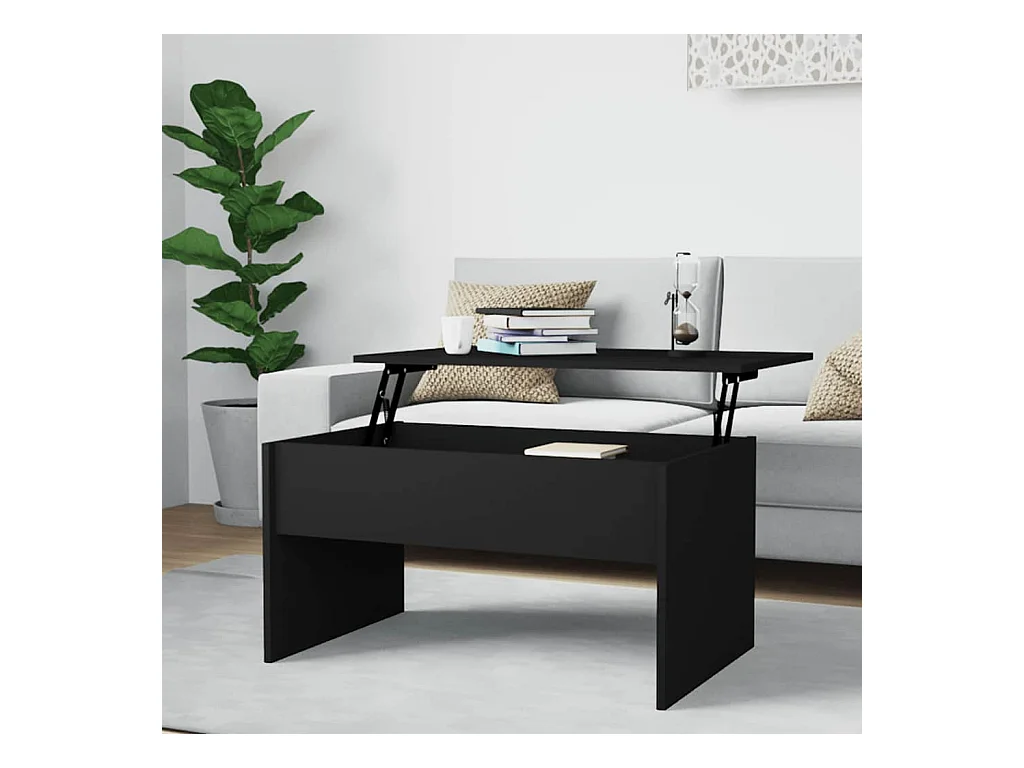 Mesa de centro-Mesa auxiliar de madera maciza de pino negro 80x81x36,5 cm SHL896