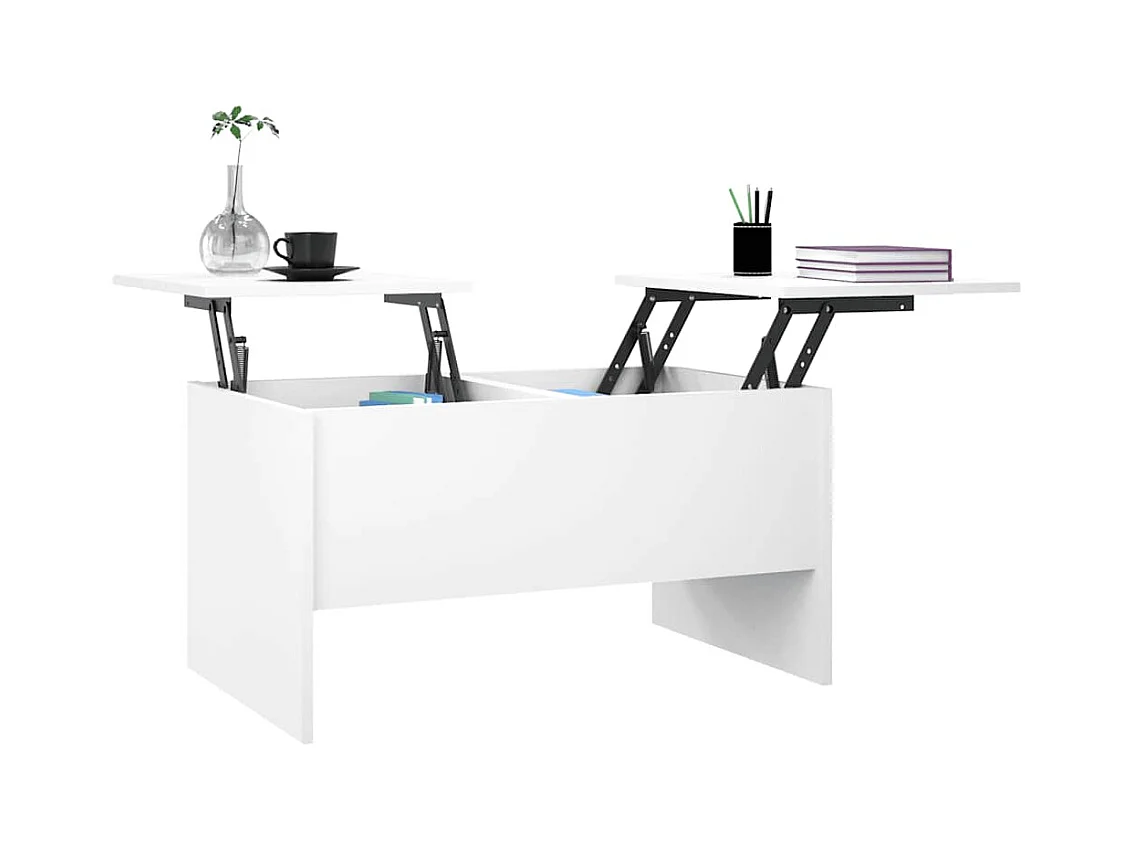 Mesita Cuar, Revistero de salón con compartimento, Mesita baja, 102x50h43 cm, Blanco