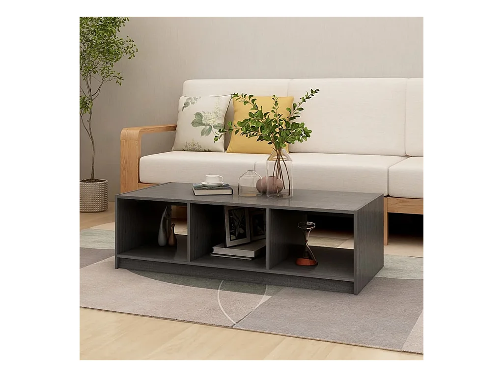 Mesa de centro de madera maciza de pino gris 110x50x40 cm ES55278