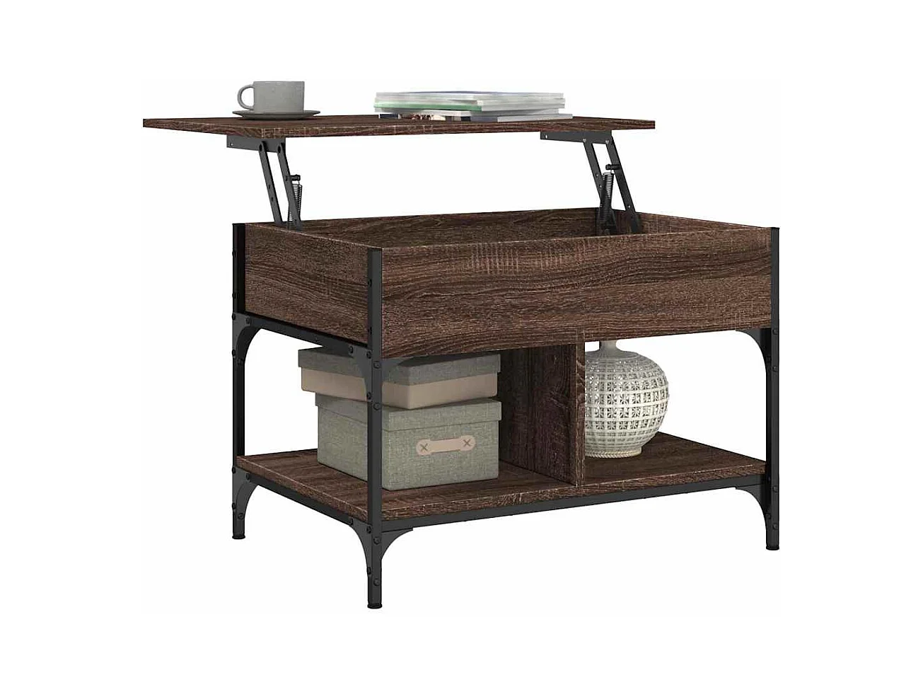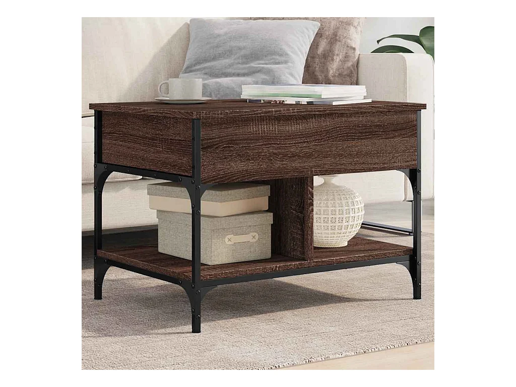 Mesa de centro-Mesa auxiliar madera de ingeniería roble ahumado 90x60x35 cm SHL169943