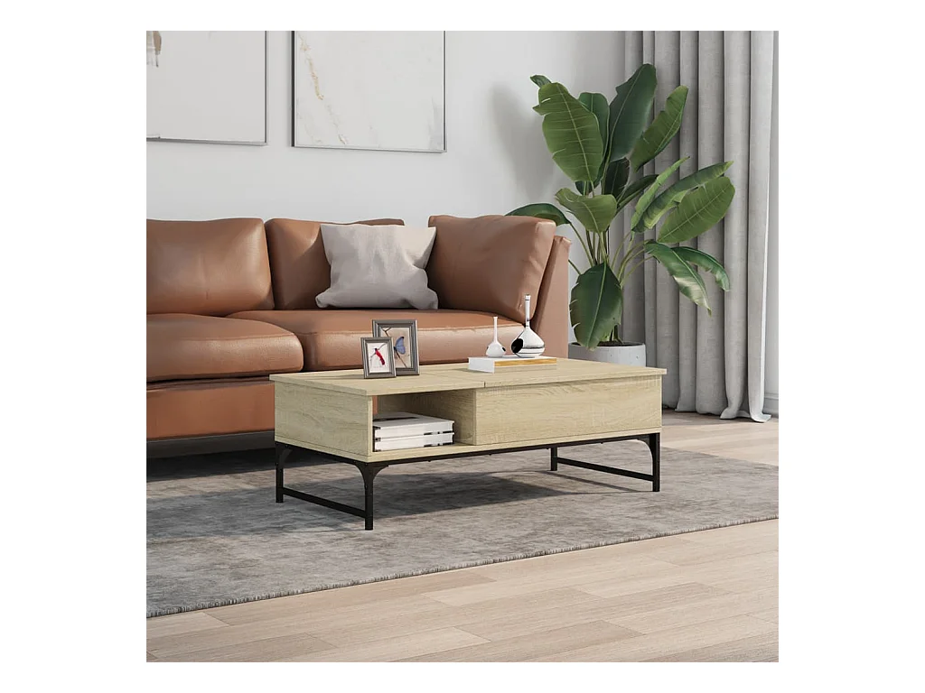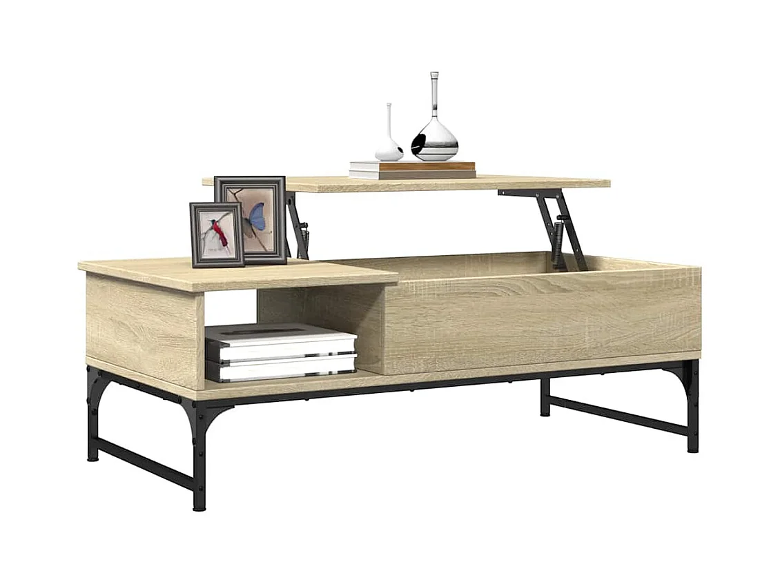 Mesa de centro-Mesa auxiliar con 2 alturas acero y madera mango 100x55x38 cm SHL3220