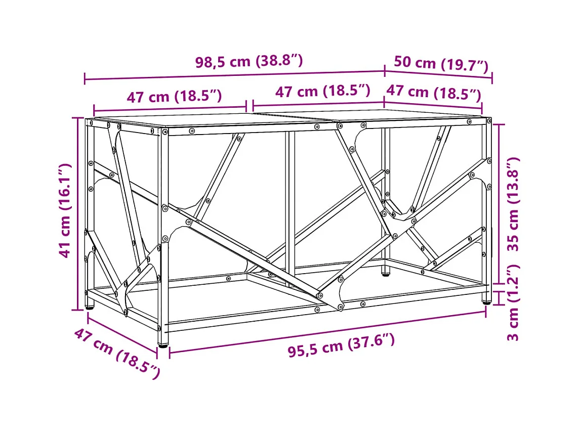 Mesa de centro de acero y tapa vidrio transparente 98,5x50x41cm