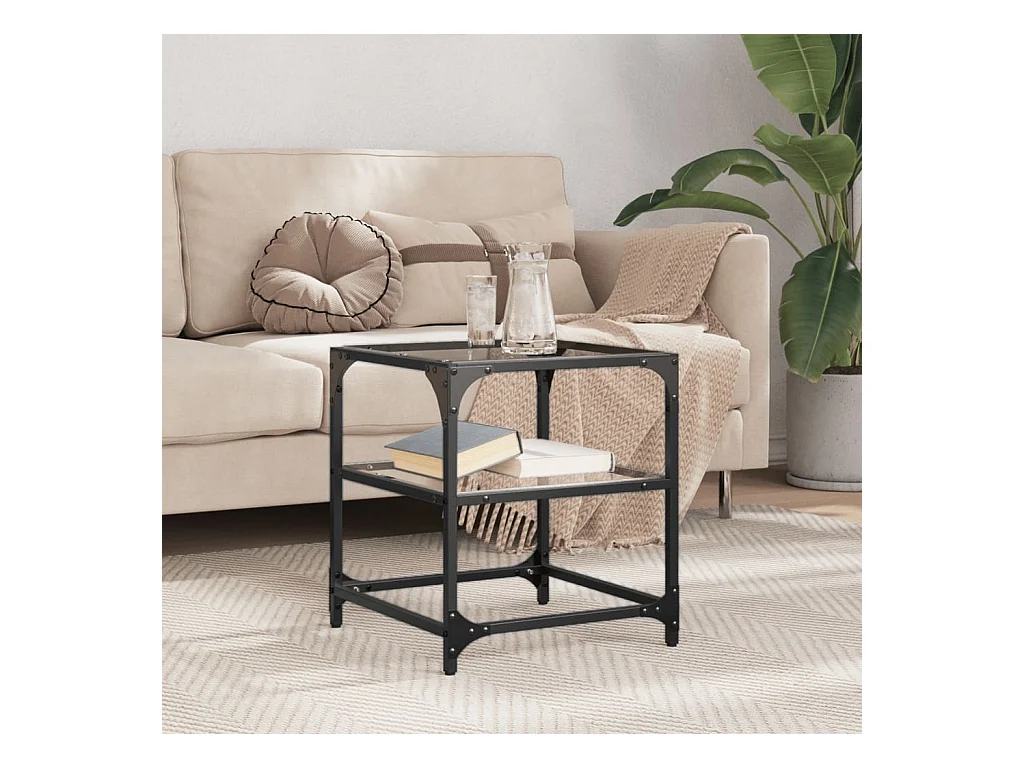 Mesa de centro-Mesa auxiliar de vidrio templado negro 50x50x45 cm SHL2799