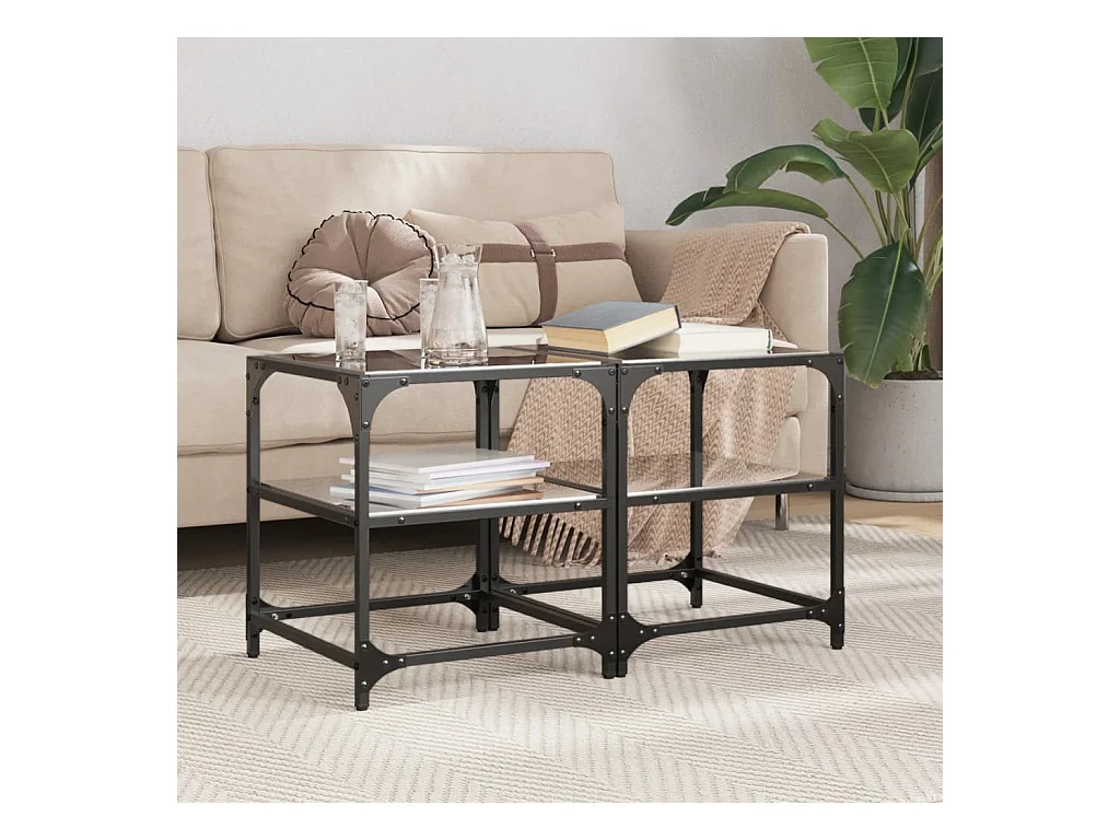 Mesa de centro | Mesa auxiliar acero laminado en frío negro 68,5x50x43,5 cm SHL32344