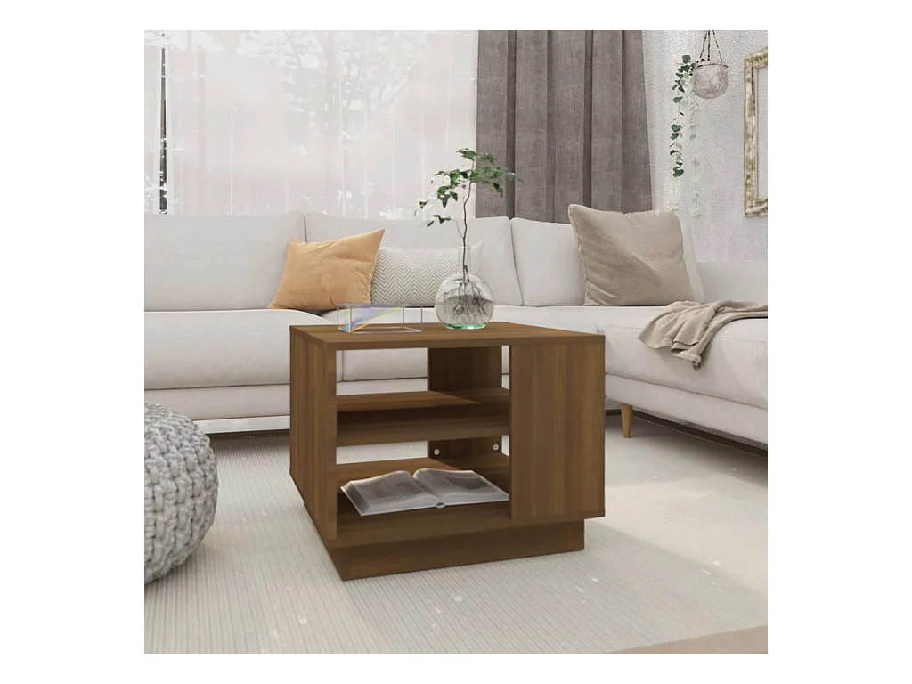 Mesa de centro | Mesa auxiliar madera ingeniería metal roble marrón 95x95x45 cm SHL4348
