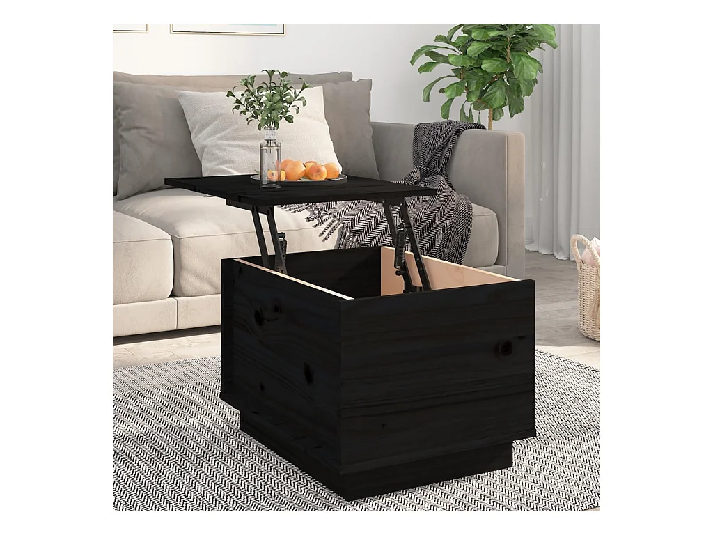 Mesa de centro de madera maciza de pino negro 80x50x35,5 cm ES75449