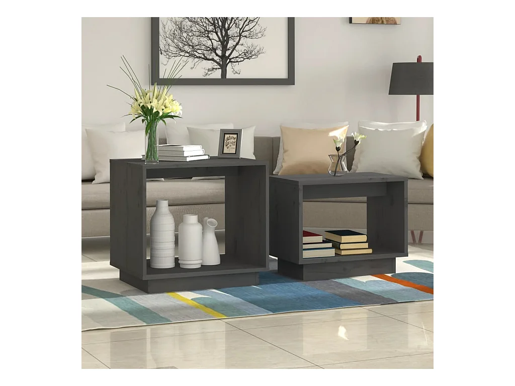 Mesa de centro 2 uds madera ingeniería gris hormigón 50x50x40cm ES63026