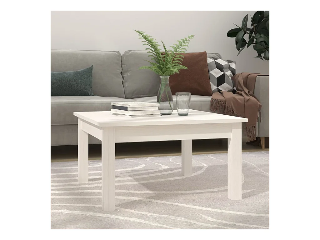 Mesa de centro de madera maciza de pino blanco 55x55x30 cm ES89915
