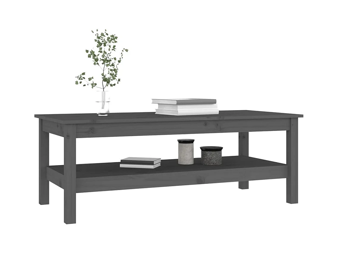 Mesa de centro de madera maciza de pino gris 110x50x40 cm ES47453