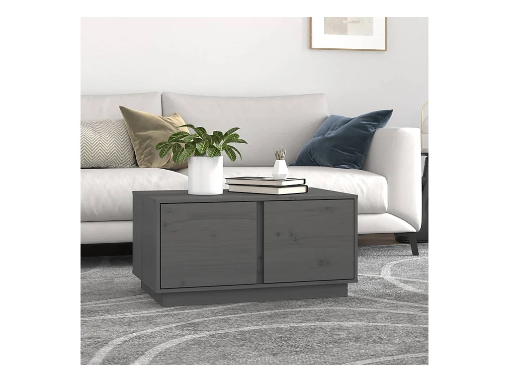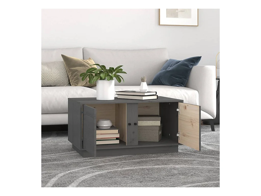 Mesa de centro madera maciza de pino gris 80x50x40 cm ES45099