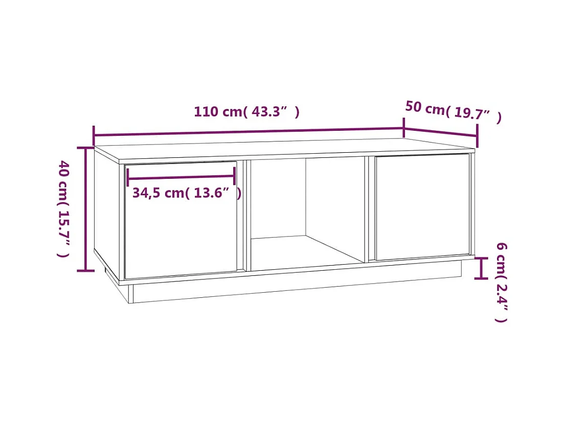 Mesa de centro madera maciza de pino marrón miel 110x50x40 cm ES61990