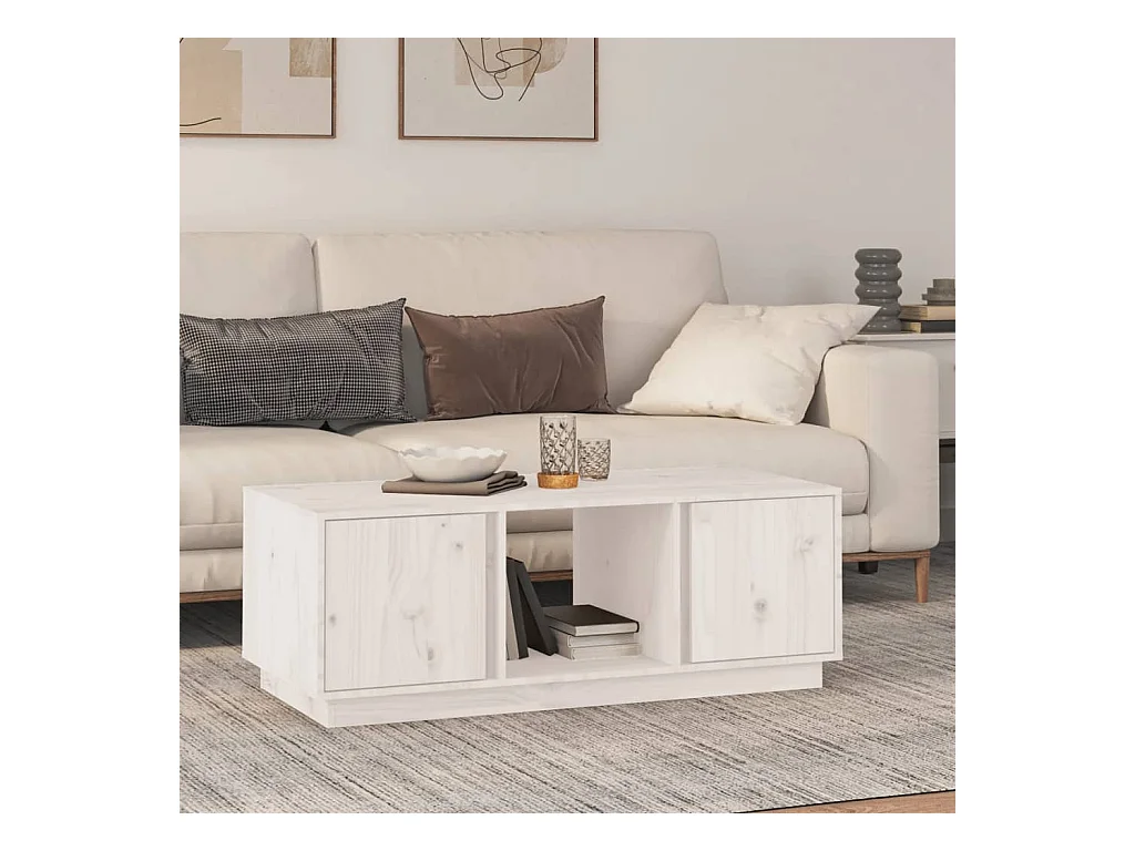 Mesa de centro de madera maciza de pino blanco 110x50x40 cm ES43117