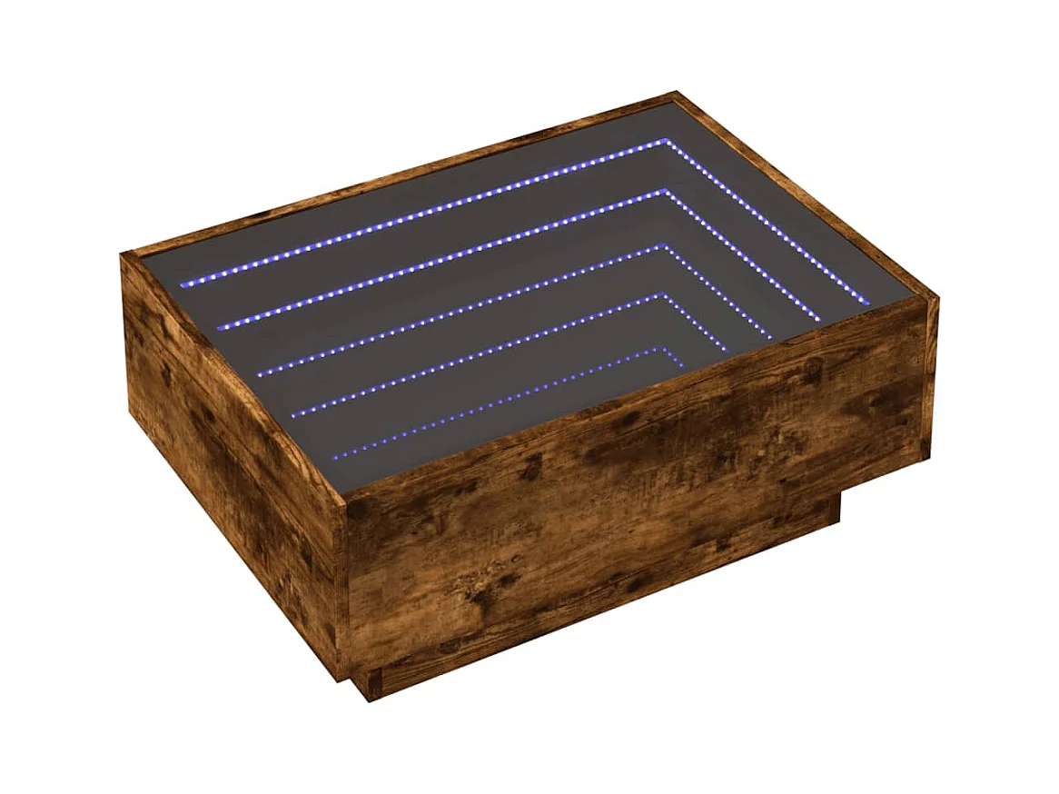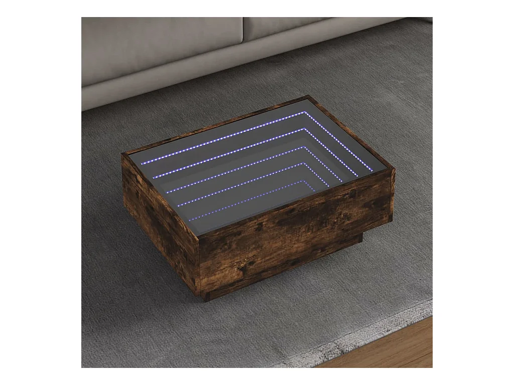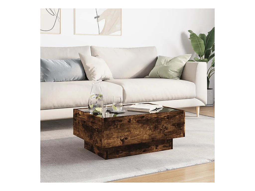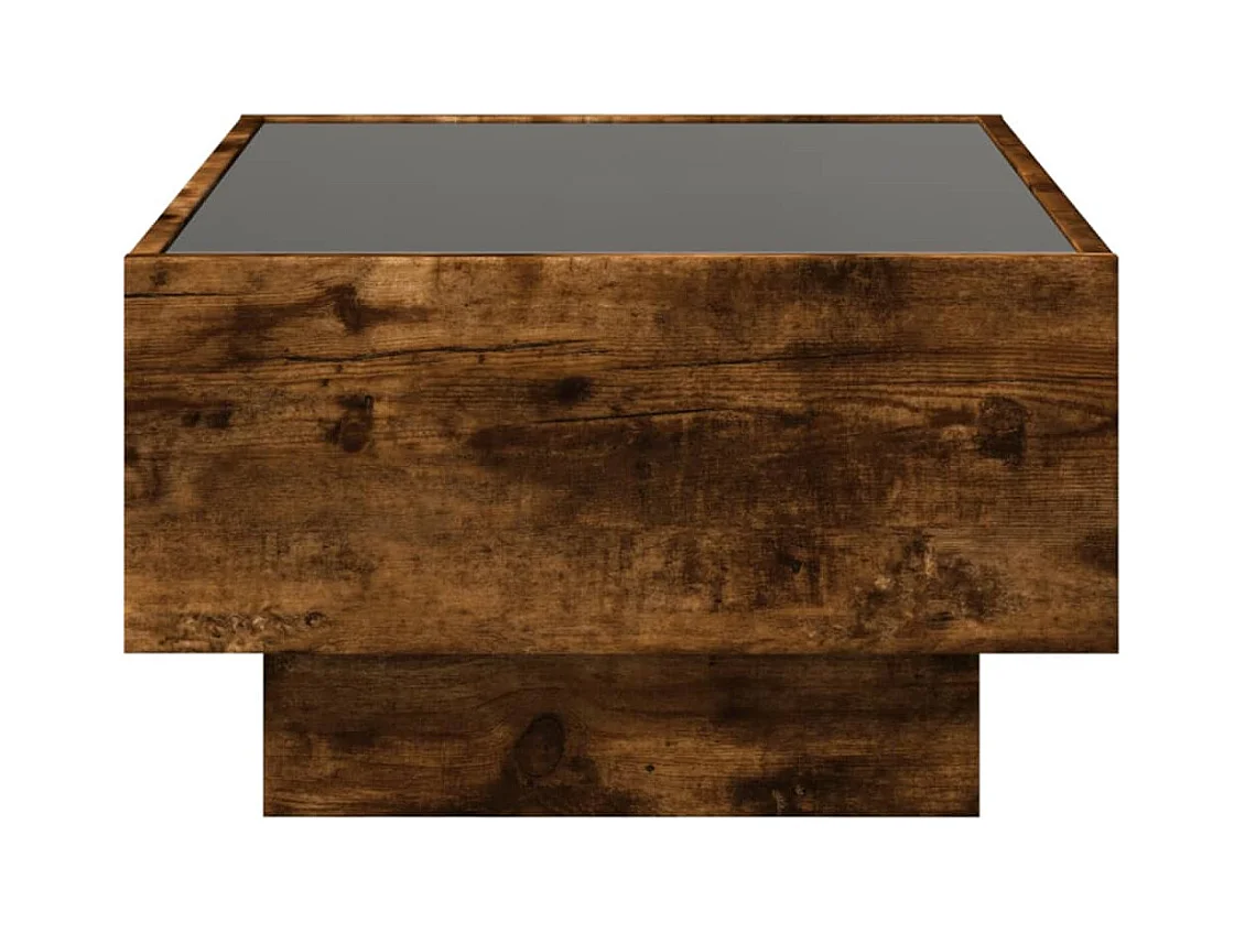 Mesa de centro y LED madera ingeniería marrón roble 70x50x30 cm