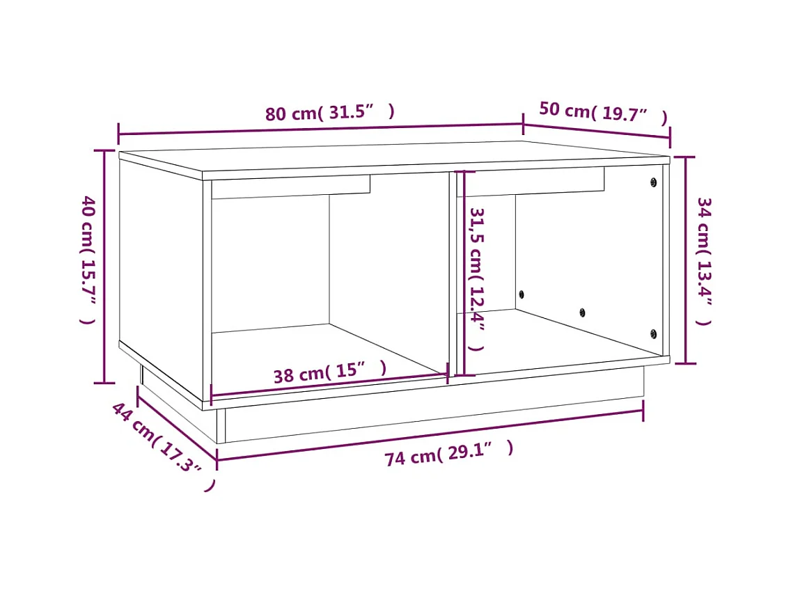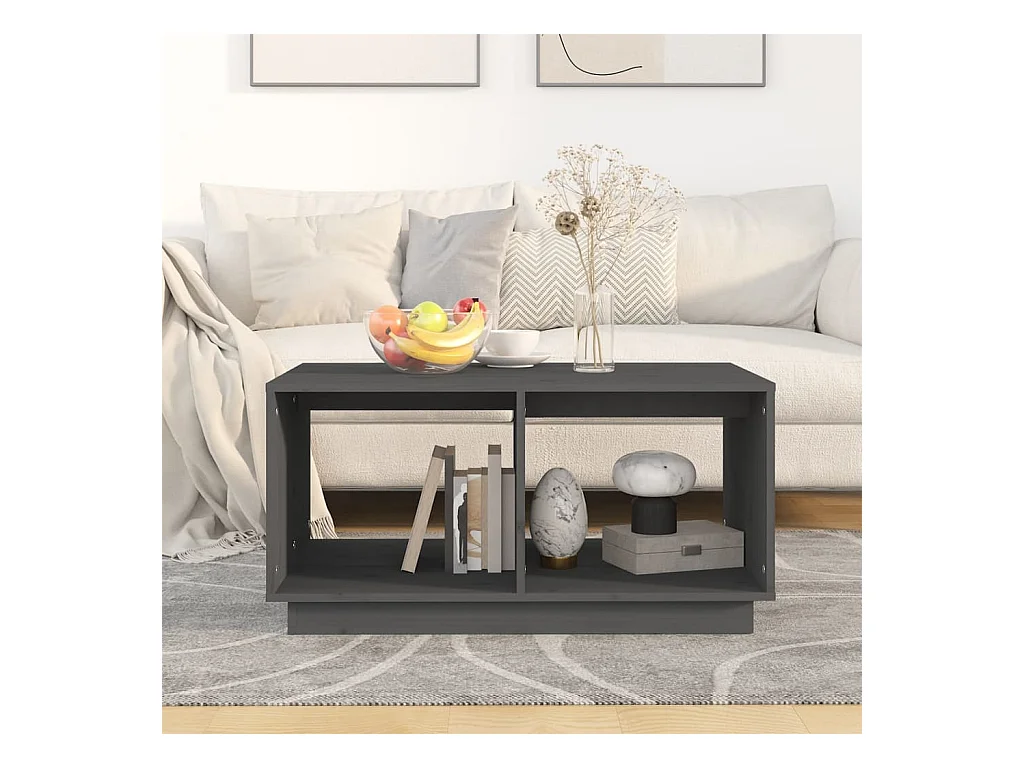Mesa de centro madera maciza de pino gris 80x50x40 cm ES16857