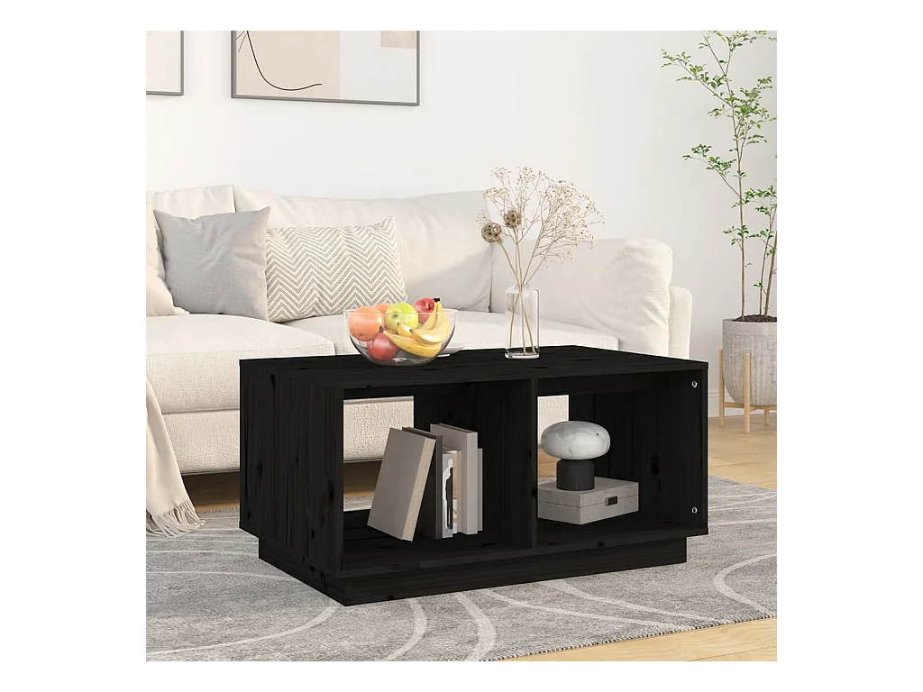 Mesa de centro madera maciza de pino negro 80x50x40 cm ES50436