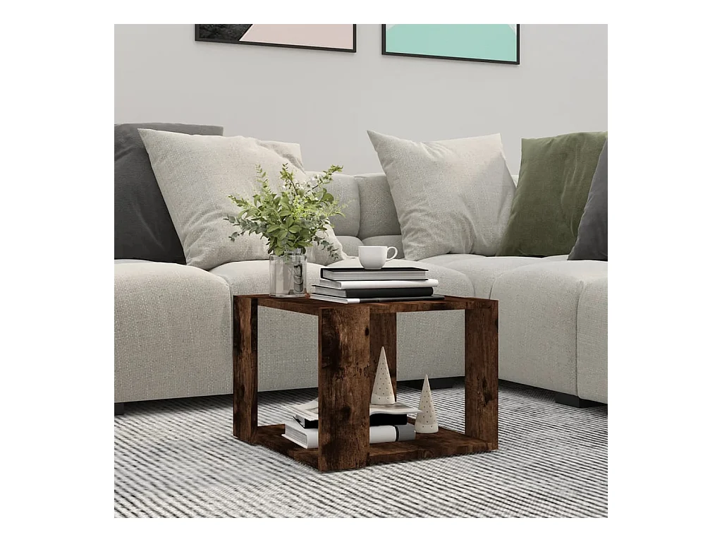 Mesa de centro-Mesa auxiliar madera de ingeniería roble ahumado 40x40x42 cm SHL4356