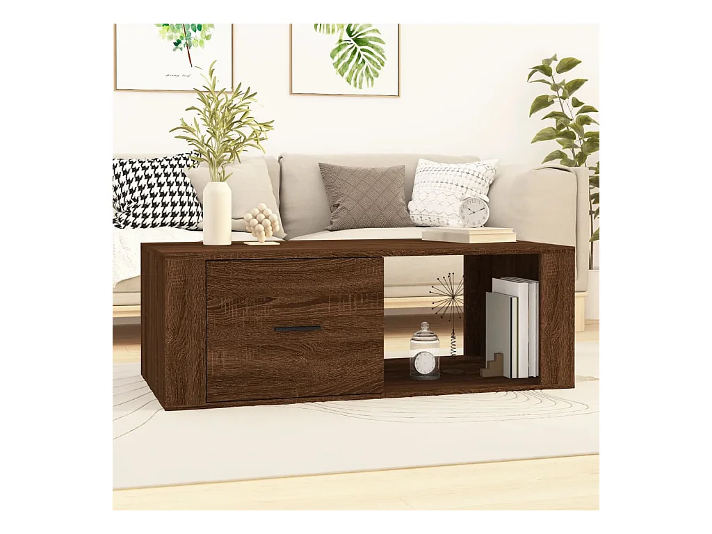 Mesa de centro | Mesa auxiliar madera contrachapada marrón roble 90x50x36,5 cm SHL1588