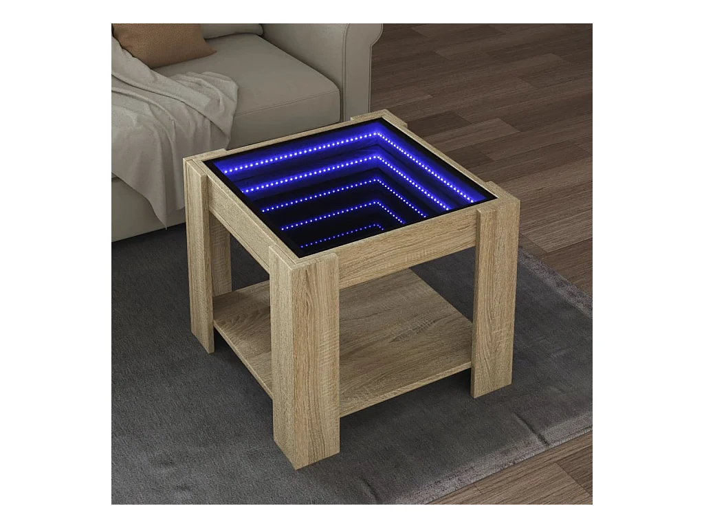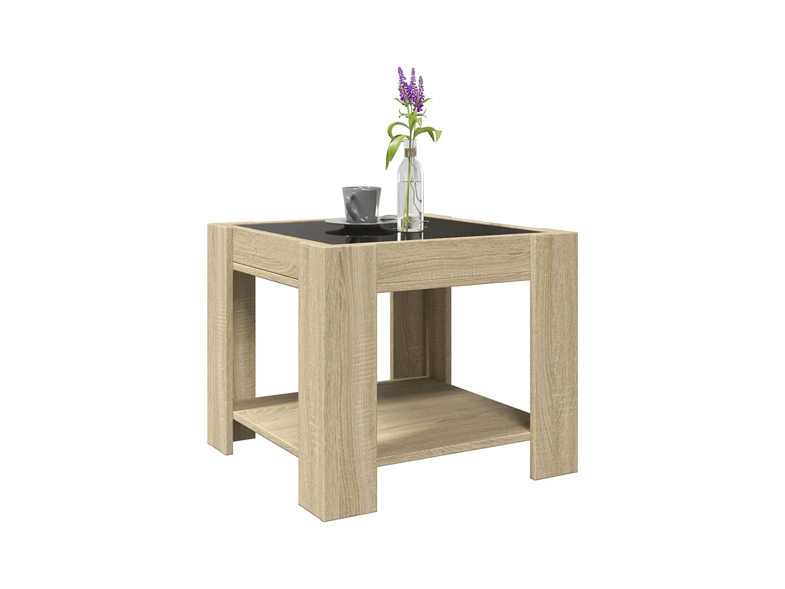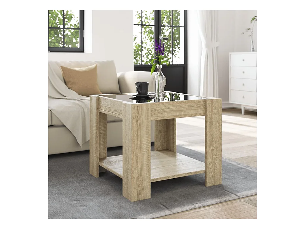 Mesa de centro y LED madera ingeniería roble ahumado 93x53x45cm