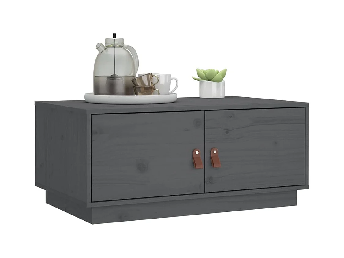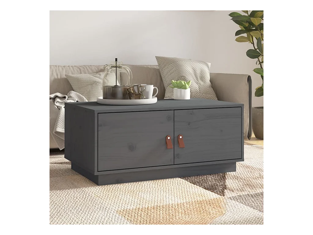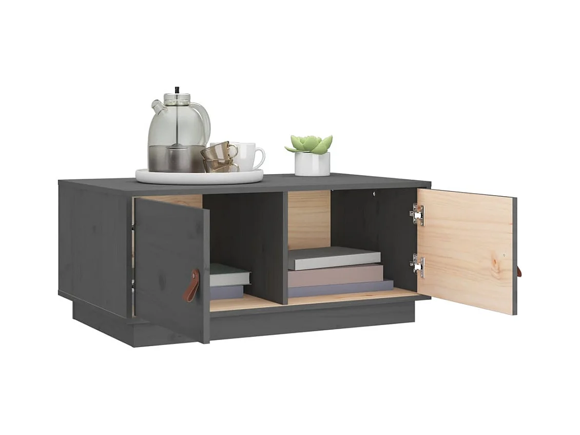 Mesa de centro de madera maciza de pino gris 80x50x35 cm ES31679