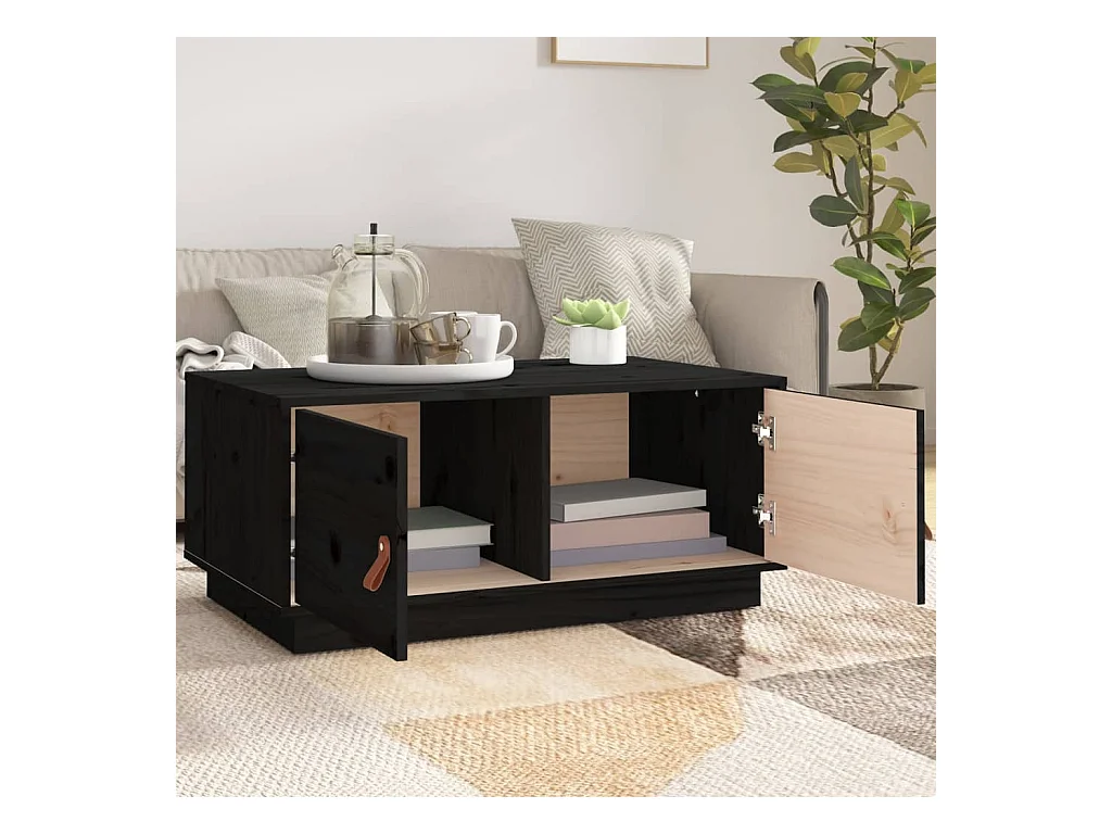 Mesa de centro de madera maciza de pino negro 80x50x35 cm ES37456