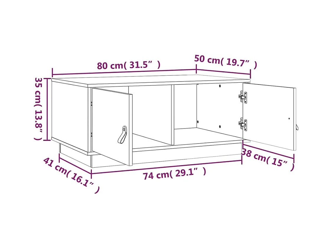 Mesa de centro de madera maciza de pino negro 80x50x35,5 cm ES75449