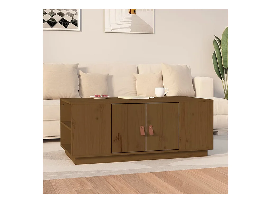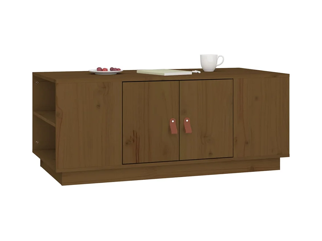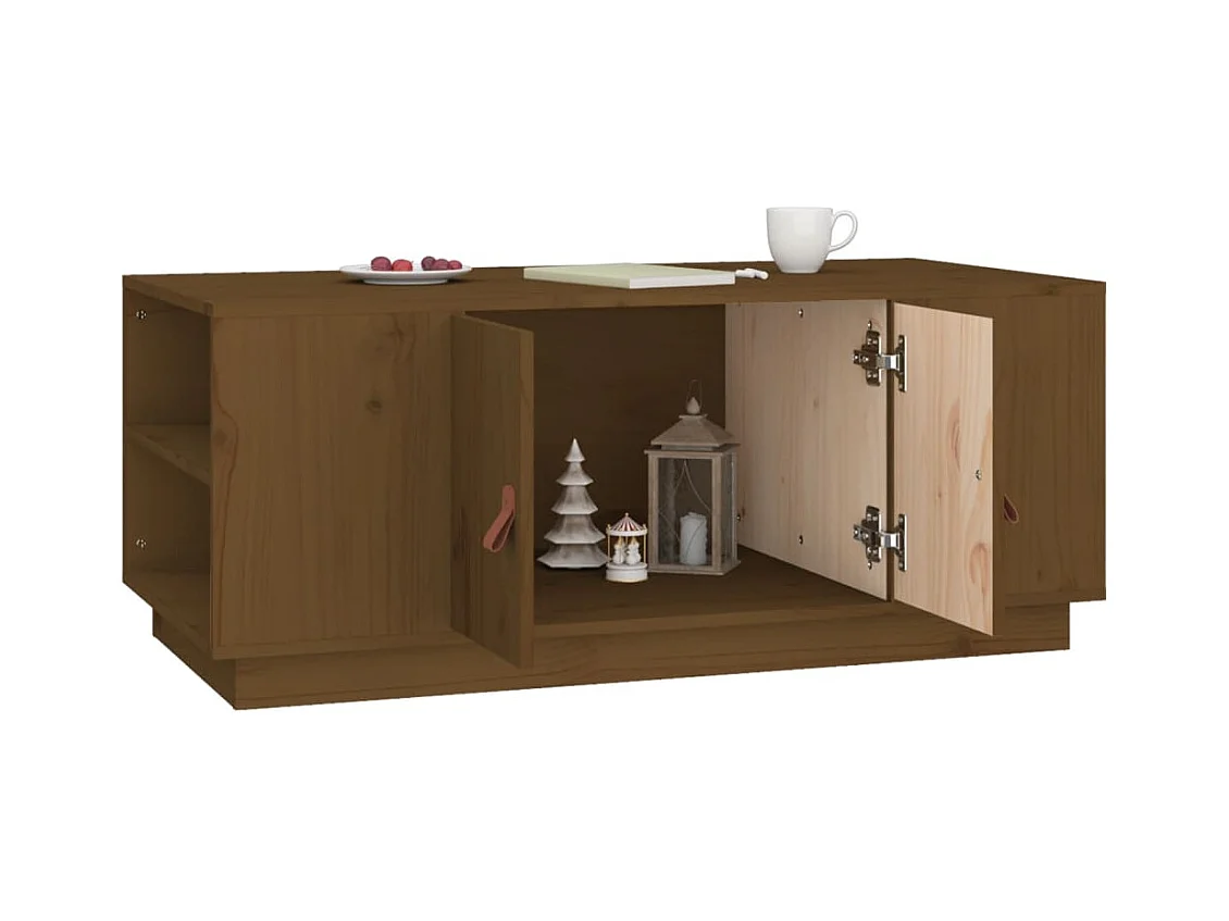Mesa de centro madera maciza de pino marrón miel 100x50x41 cm ES11117