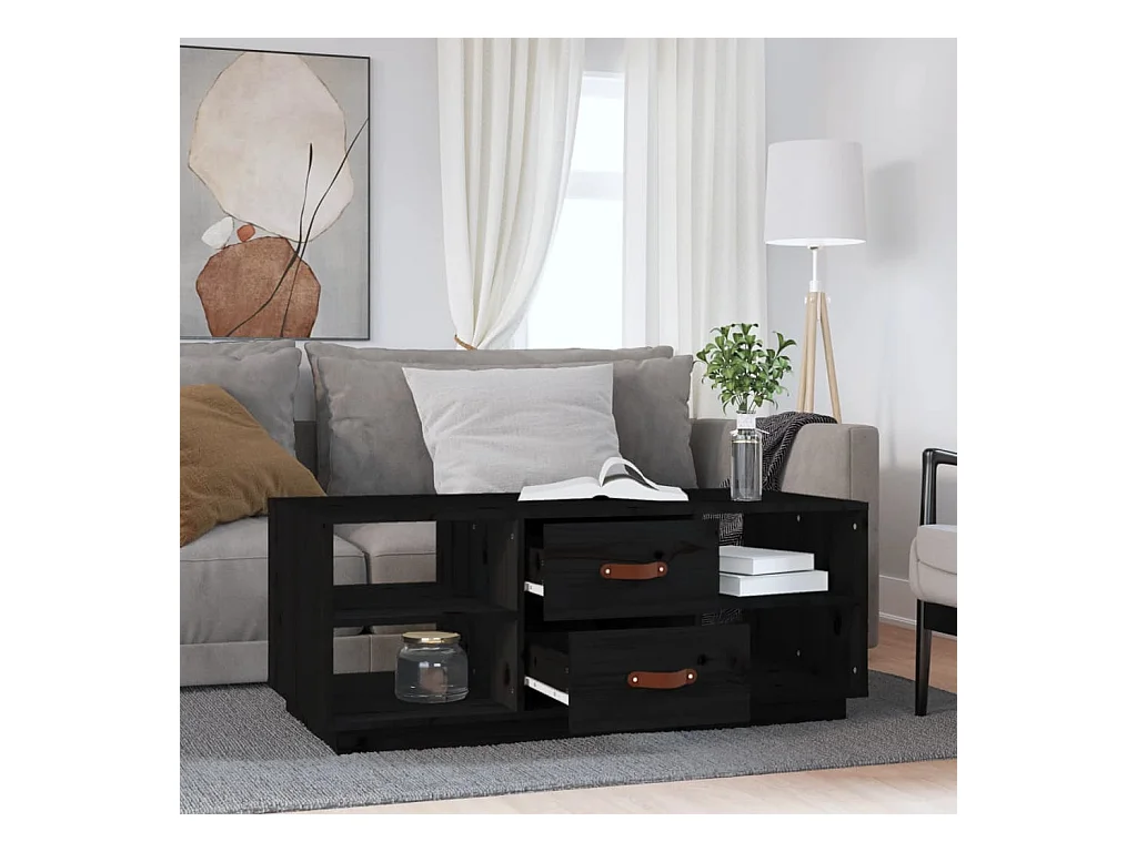 Mesa de centro de madera maciza de pino negro 100x50x41 cm ES36358