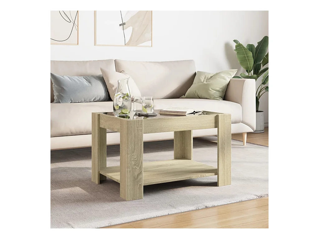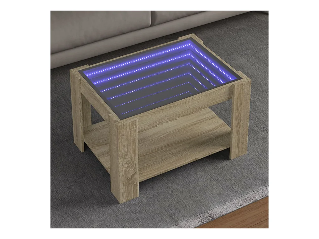 Mesa de centro y LED madera ingeniería roble Sonoma 73x53x45 cm