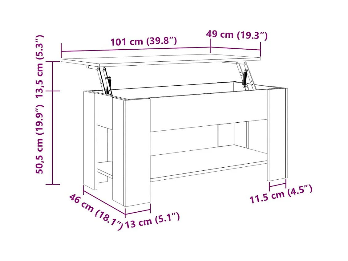 Mesa de centro | Mesa auxiliar madera contrachapada roble ahumado 100x50x35 cm SHL201076