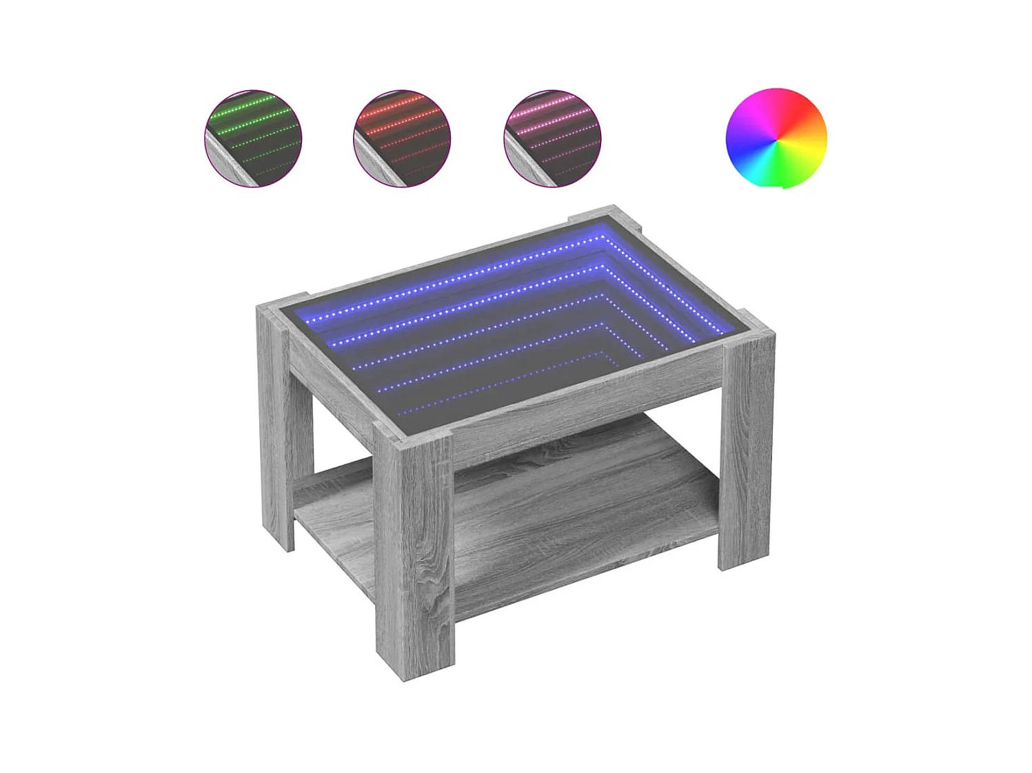 Mesa de centro y LED madera ingeniería gris Sonoma 73x53x45 cm