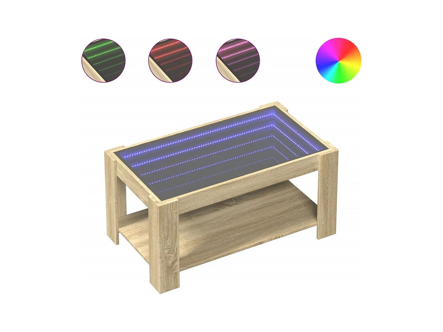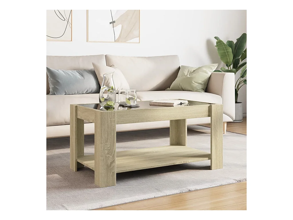 Mesa de centro y LED madera ingeniería roble Sonoma 93x53x45 cm