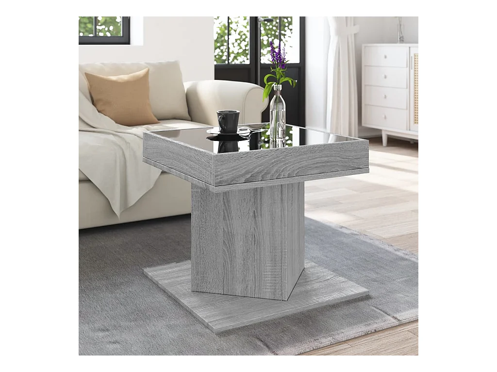 Mesa de centro | Mesa auxiliar y LED madera ingeniería marrón roble 53x53x45 cm SHL2497